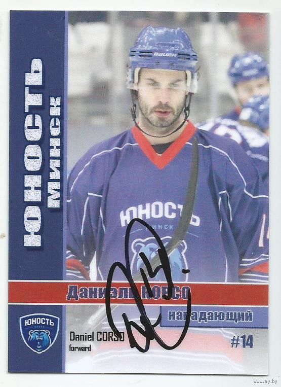 Даниэль Корсо / ХК "Юность" Минск / Карточка с живым автографом/ Сезон 2014-2015гг.