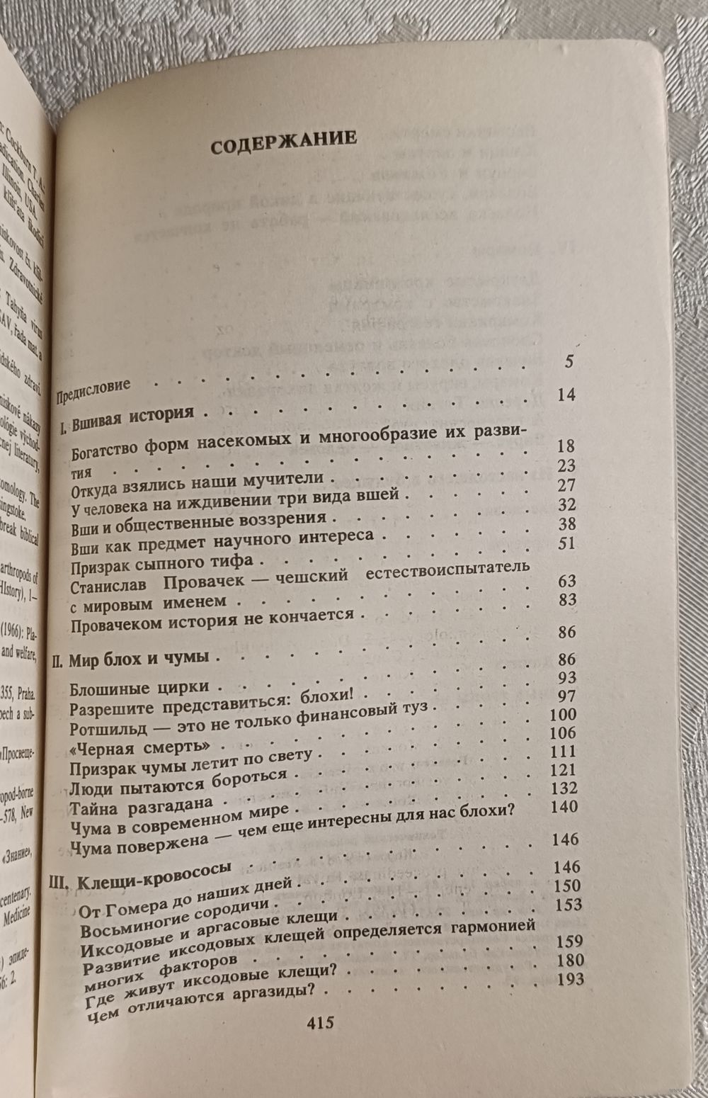 В книге известного чешского ученого и альпиниста описываются «взаимоотношения» человечества и переносчиков эпидемических болезней. Не сразу, по мере роста культуры и научных знаний, к людям приходило понимание того, что привычные, хотя и неприятные спутники людей, начиная с жизни в пещерах и ранее — блохи, вши и др. являются переносчиками чумы и других болезней, буквально косивших человечество вплоть до XX века.