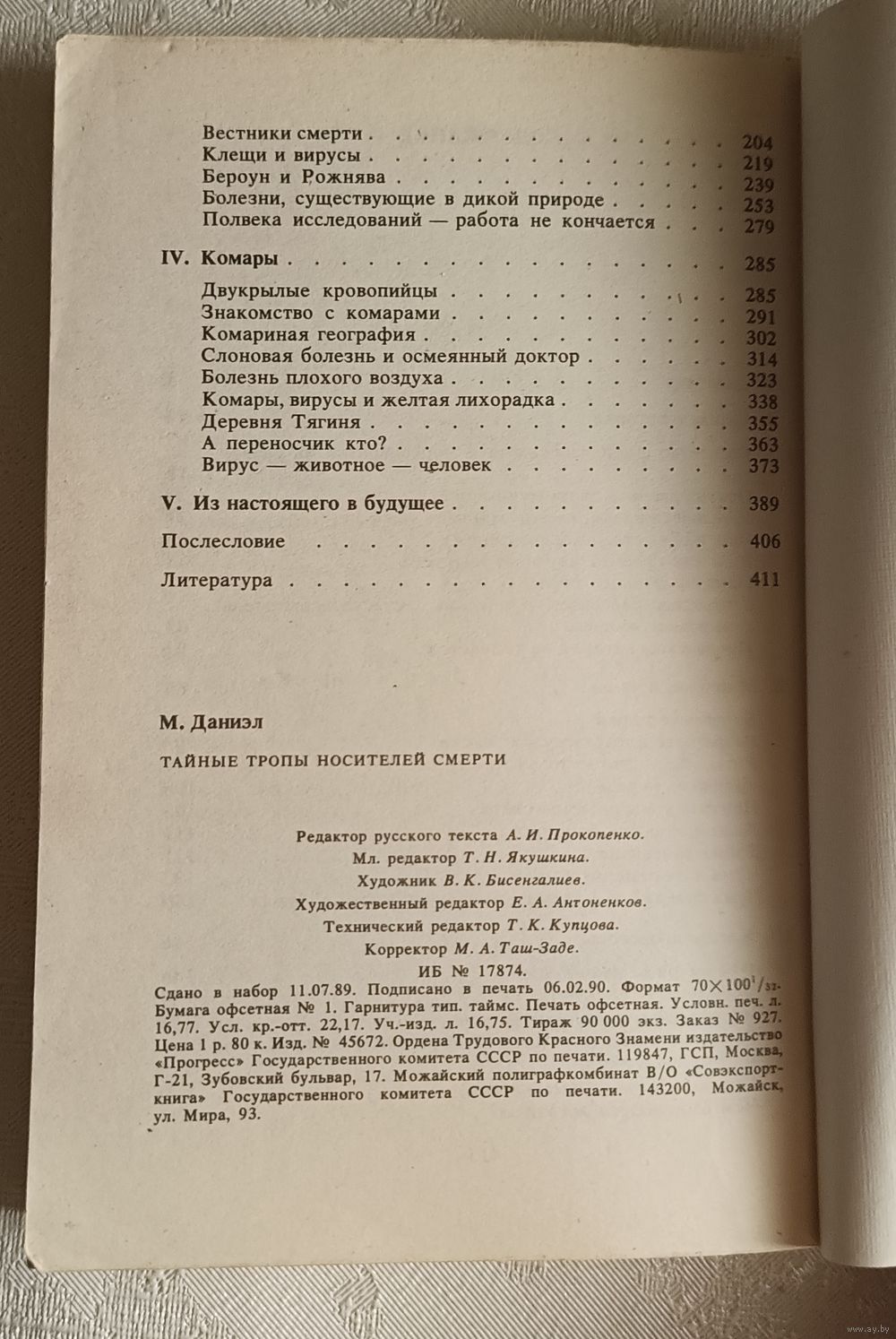 Даниэл М. Тайные тропы носителей смерти. М.: Прогресс, 1990.-416 с.: ил., мягкая обложка, уменьшенный формат.