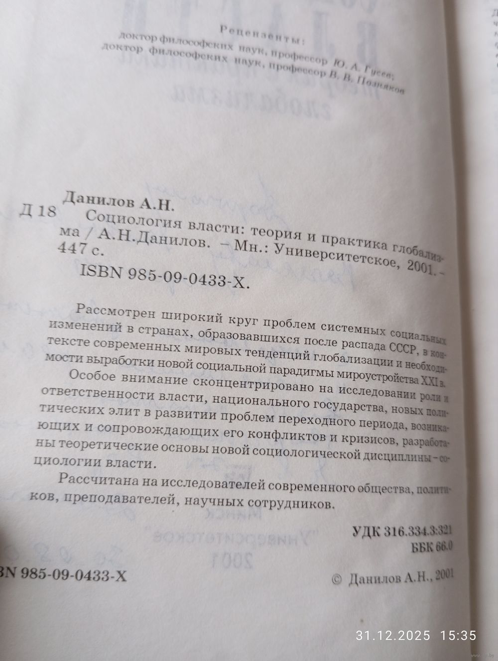 Данилов А. Социология власти. С автографом. Редкая. Мн. Университетское 2001. В прекрасном состоянии, тв переплет. 447 с. Тираж 1000 (!). Возможность отправки Белпочтой, полная предоплата на карту Беларусбанк
