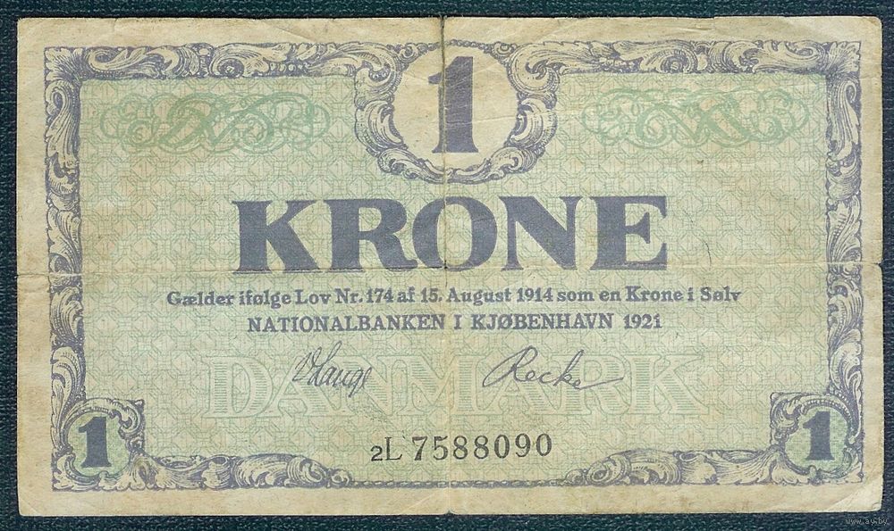 Дания 1 крона 1921 год. - RедкаЯ -