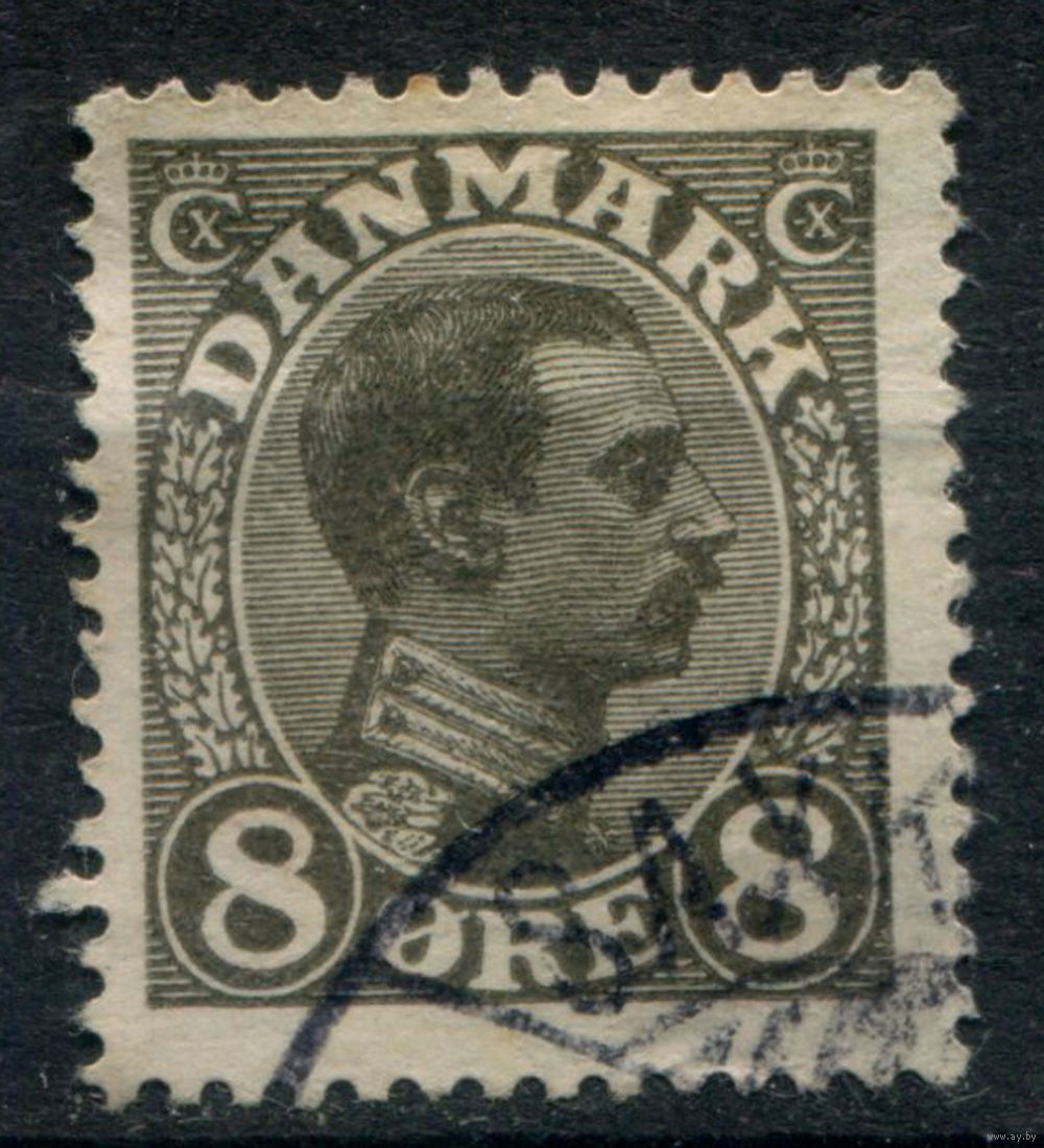 Дания - 1918/20г. - король Кристиан X, 8 О - 1 марка - гашёная, есть небольшое утончение [Mi 98]. #3-WB-91-KS-8