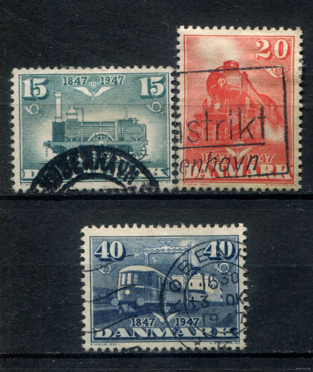 ![Дания - 1947г. - 100 лет датской железной дороге - 3 марки - полная серия, гашёные [Mi 298-300]. #3-WB-97-KS-8](https://s3-lot.aystatic.by/550x510/324/176/5040/5040176324_0.jpg)