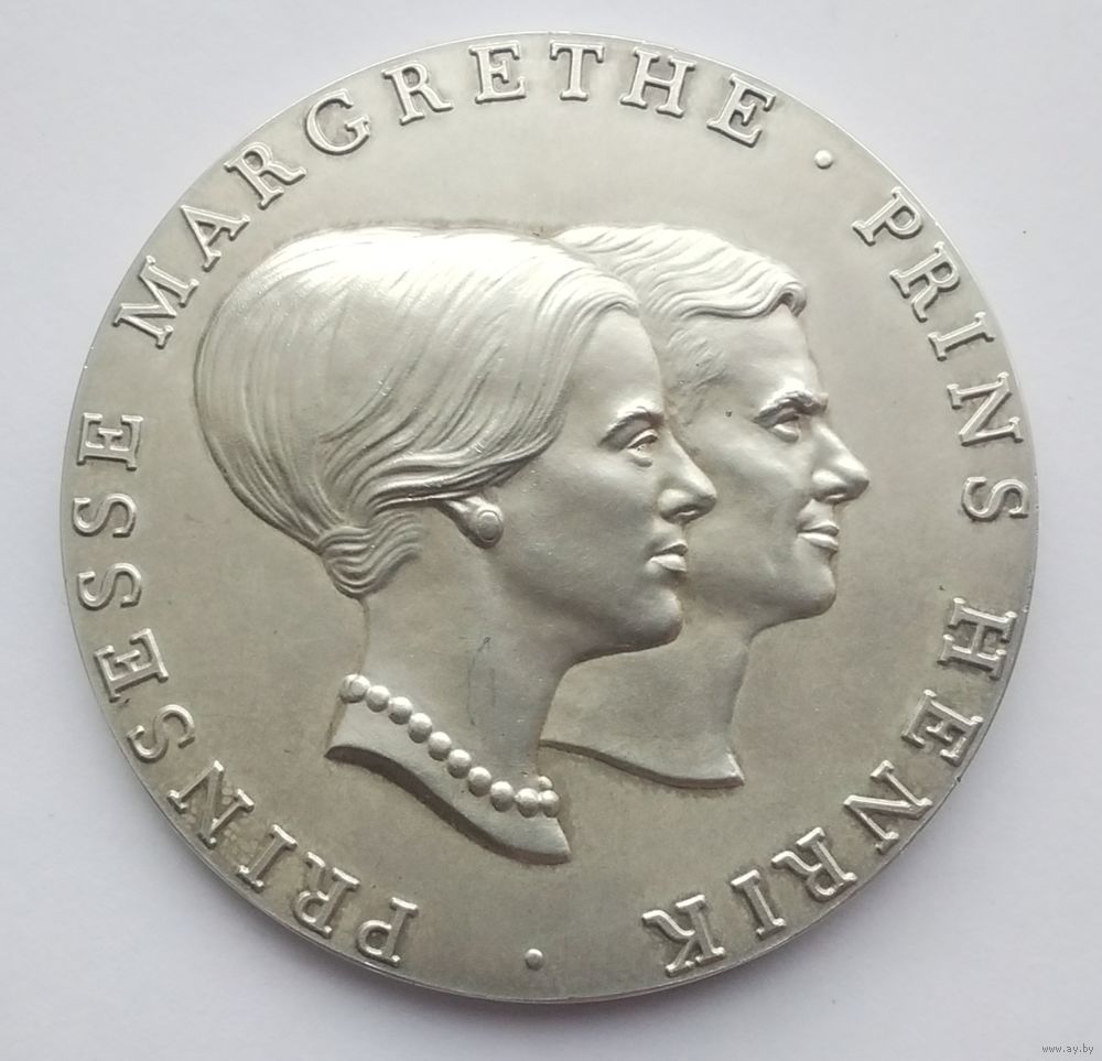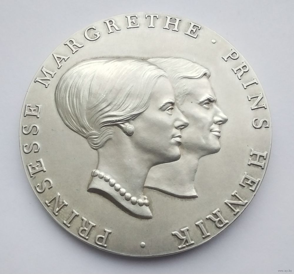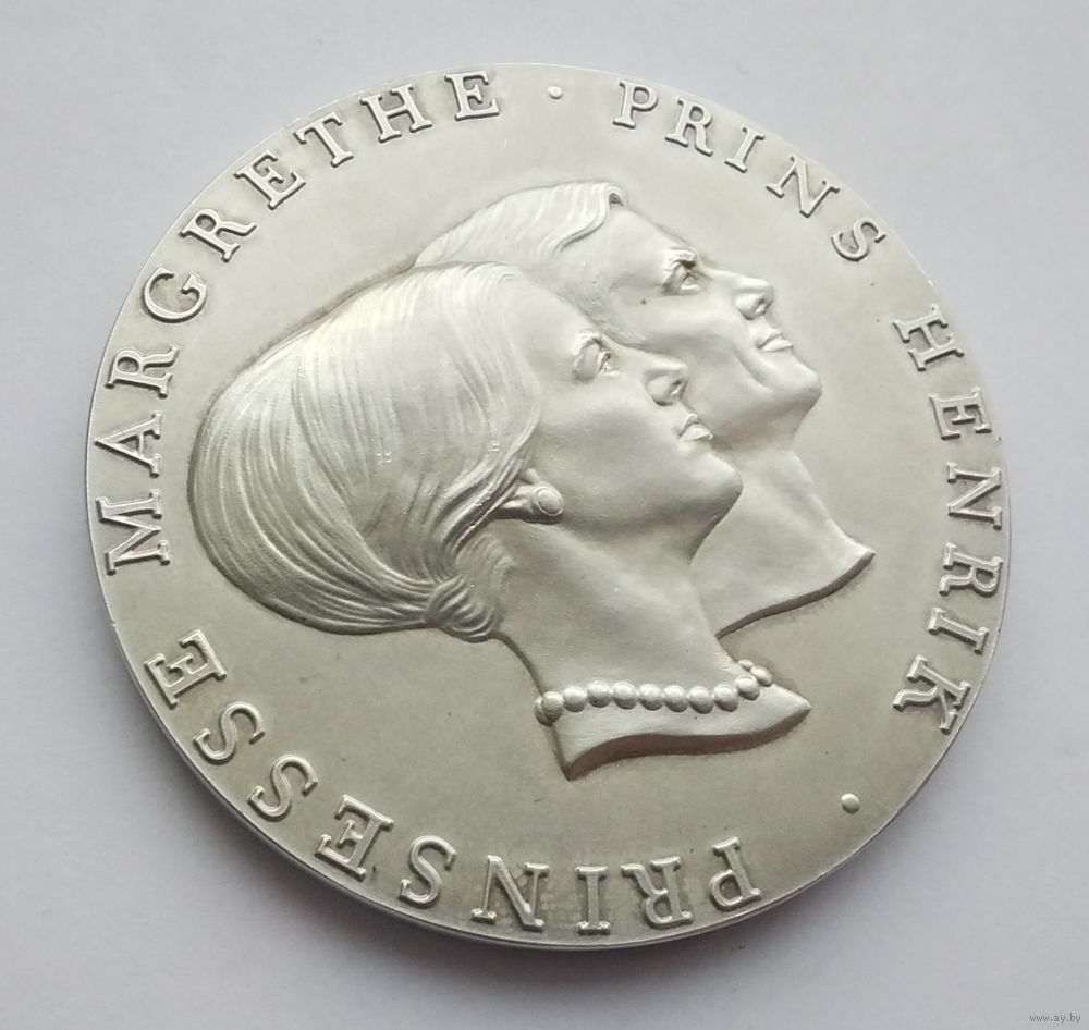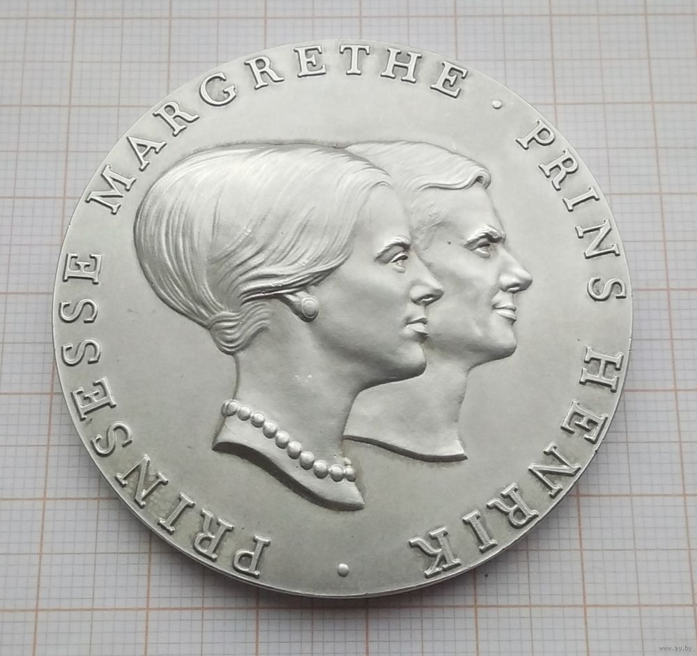 Дания. Свадебная медаль королевы Маргрете II и принца Хенрика. 10 июня 1967 г.