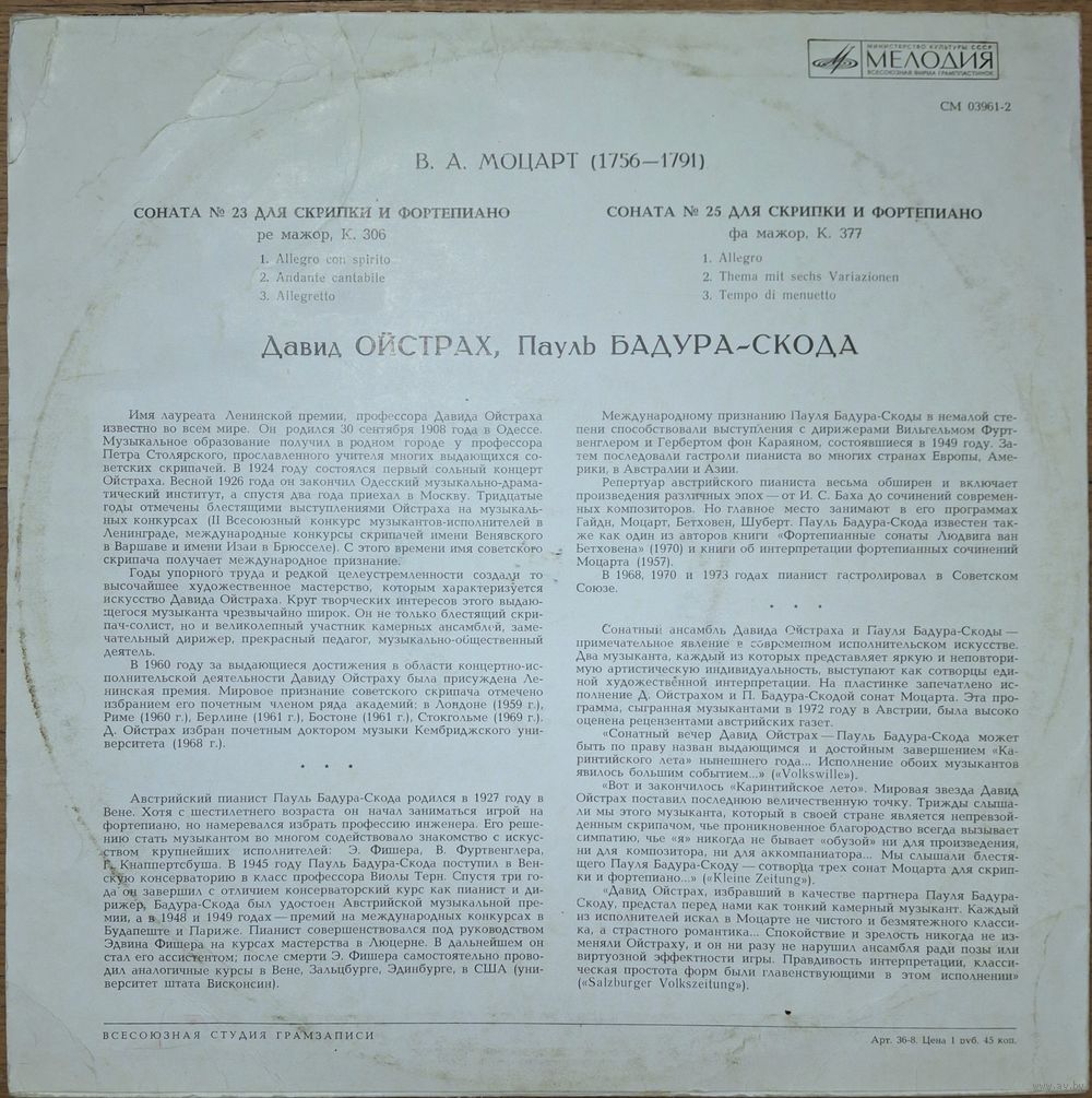 | Исполнитель | Давид Ойстрах, Пауль Бадура-Скода |
