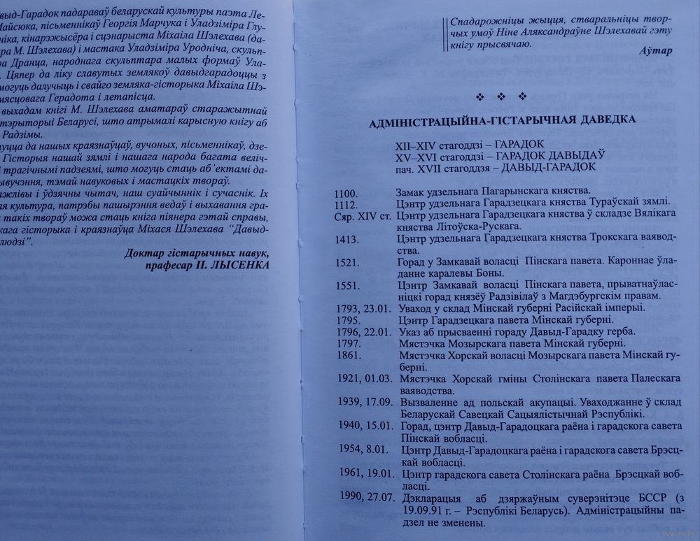 Вялікі фармат. Тыраж 2000 экз. 304 стар. У мястэчку Давыд-Гарадок Столінскага павета Палескага ваяводства (цяпер Столінскага раёна Брэсцкай вобласці) 6 мая 1936 года ўспыхнуў вялікі пажар. Згарэла драўляная Васкрасенская царква, якая з пачатку ХІХ ст. стаяла на Замкавай гары на беразе ракі Гарынь, і больш за 100 дамоў.