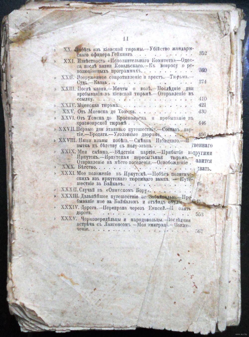 Прижизненная книга Владимира Карповича Дебогория-Мокриевича(1848,Чернигов-1926,Болгария), революционера-народника, одного из руководителей южного кружка террористов(`кружок бунтарей`, `исполнительный комитет`), действовавшего в Киеве, Одессе, Харькове и др.южно-русских городах, приговоренного в 1879 г.к 14-ти годам 10 мес.каторги(ссылки) и бежавшего с нее за границу, издававшего в эмиграции в Женеве вместе с В.Бурцевым `Свободную Россию`. Первое издание в России, ранее воспоминания были изданы за границей: Париж, 1894-1898гг.(выходили частями) и Штутгарт, 1903г. По содержанию мемуары Дебогория-Мокриевича, безусловно, относятся к наиболее интересному из всего написанного о революционной деятельности в России второй половины XIX в. Из содержания: Университетское время и начало моего народничества - Народничество и американизм - Поездка за границу, знакомство с Бакуниным - Первый обыск. Киевская `коммуна`. Плотничья артель - Сергей Ковалик. Обыск в `коммуне`. Сапожная мастерская - Путешествие в народ - Погром - Взгляд на движение 74-го года. Поездка за границу. Встреча с Мышкиным - Наш кружок и наша программа. Чигиринские волнения. Знакомство с чигиринцами - Покушение на жизнь Гориновича и наша бегство из деревень. Арест в местечке Шполе. Склад в Харькове - Очищение конспиративной квартиры. Студенческие волнения - Политика и первые террористы - Покушение на жизнь Котляревского и начало `Исполнительного комитета` - Моя поездка в Чигиринщину - Побег из киевской тюрьмы. Убийство жандармского офицера Гейкинга - Известность `Исполнительного комитета`. Одесса после казни Ковальского. К вопросу о революционных программах - Вооруженное сопротивление и арест. Тюрьма. Суд. Казнь - После казни. Последние дни пребывания в киевской тюрьме. Отправление в ссылку - Мценская тюрьма - От Мценска до Томска - От Томска до Красноярска и пребывание в красноярской тюрьме - Первые дни этапного путешествия. Состав партии. Бродяги. Уголовные дворяне - Попытка к бегству с полу-этапа - Прибытие в Иркутск. Иркутская пересыльная тюрьма. Отправление на место поселения - Бегство - Мое положение в Иркутске. Побег политических из иркутского тюремного замка. Путешествие за Байкал - Случай в `Онинском лесу` - Дальнейшее путешествие по Забайкалью - Переправа через Енисей - Чернопередельцы и народовольцы. Последняя встреча с Лангенсом. Моя эмиграция.