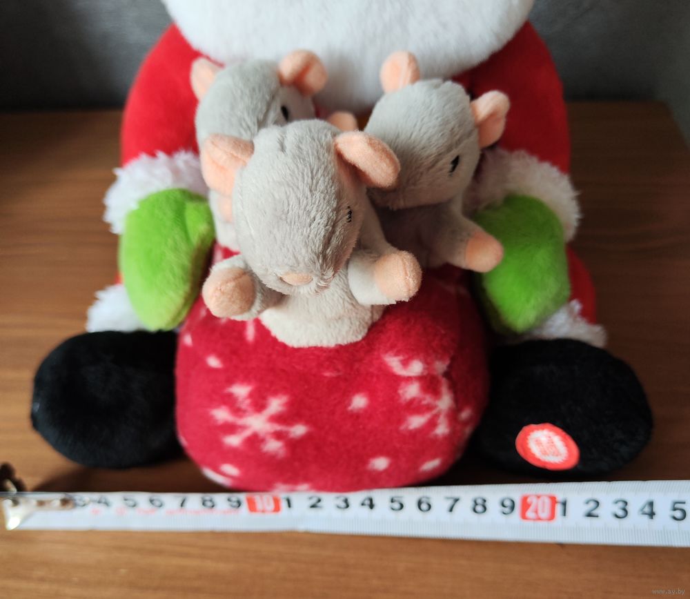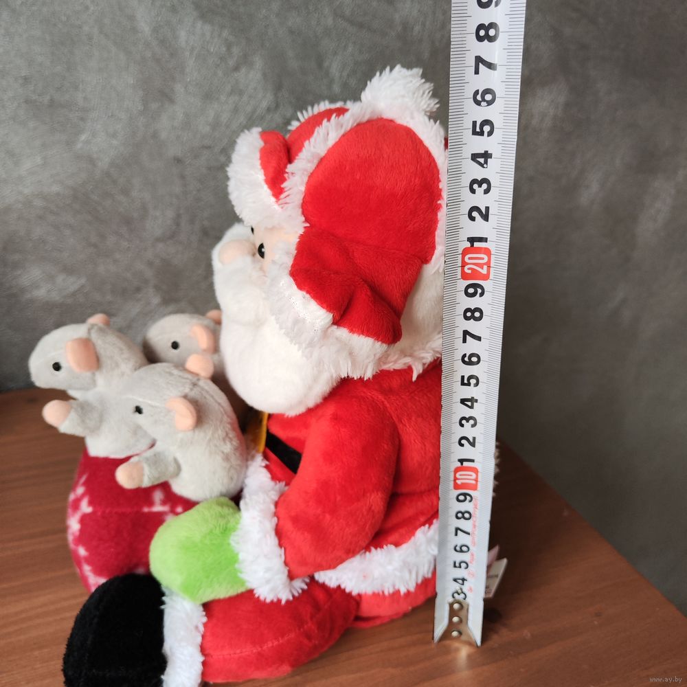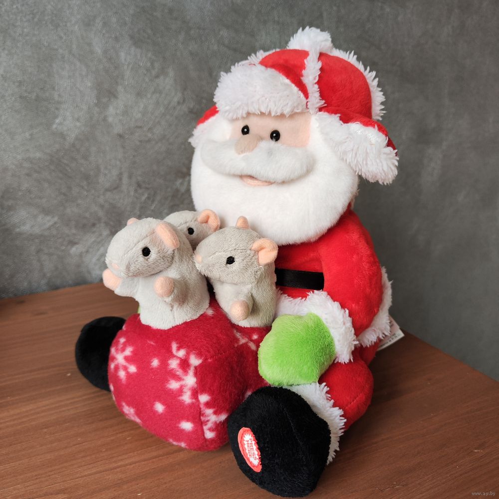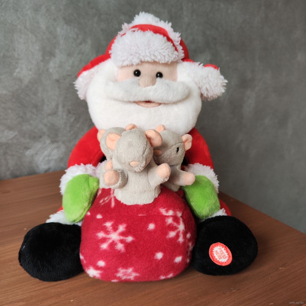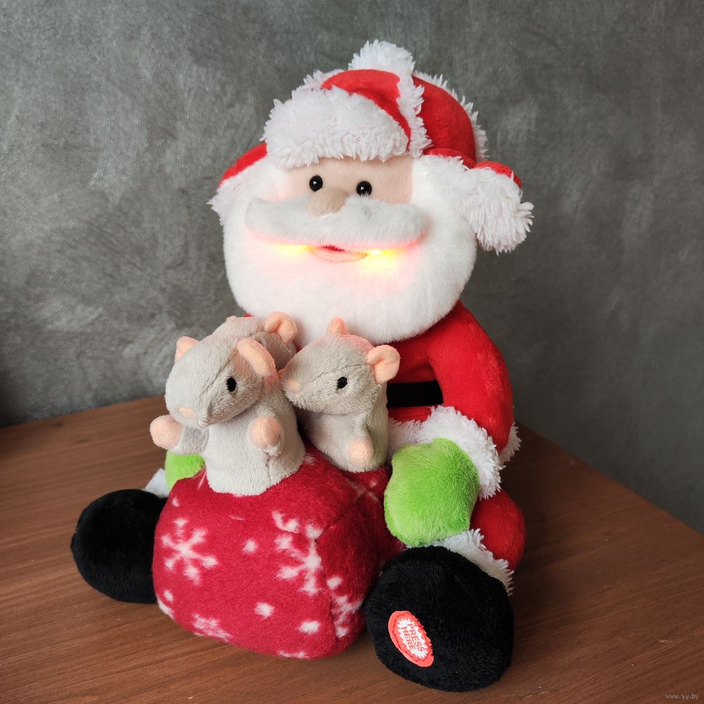 Позитивный Дед Мороз/ Санта Клаус поет на шведском, светится и качает головой в такт. Где припев типо "ля-ля-ля" должны раскачиваться мыши, но они неподвижны. Веселая мягкая игрушка (на батарейках) для новогоднего декора, добавляет настроение.