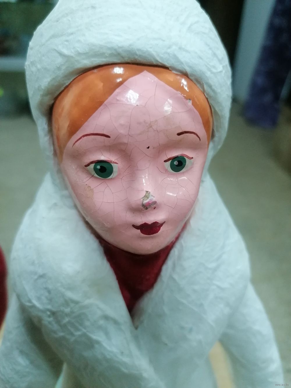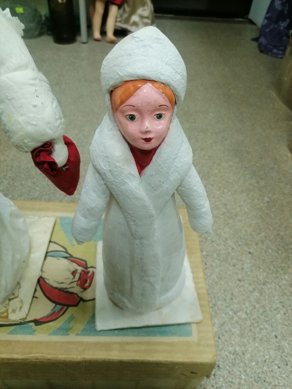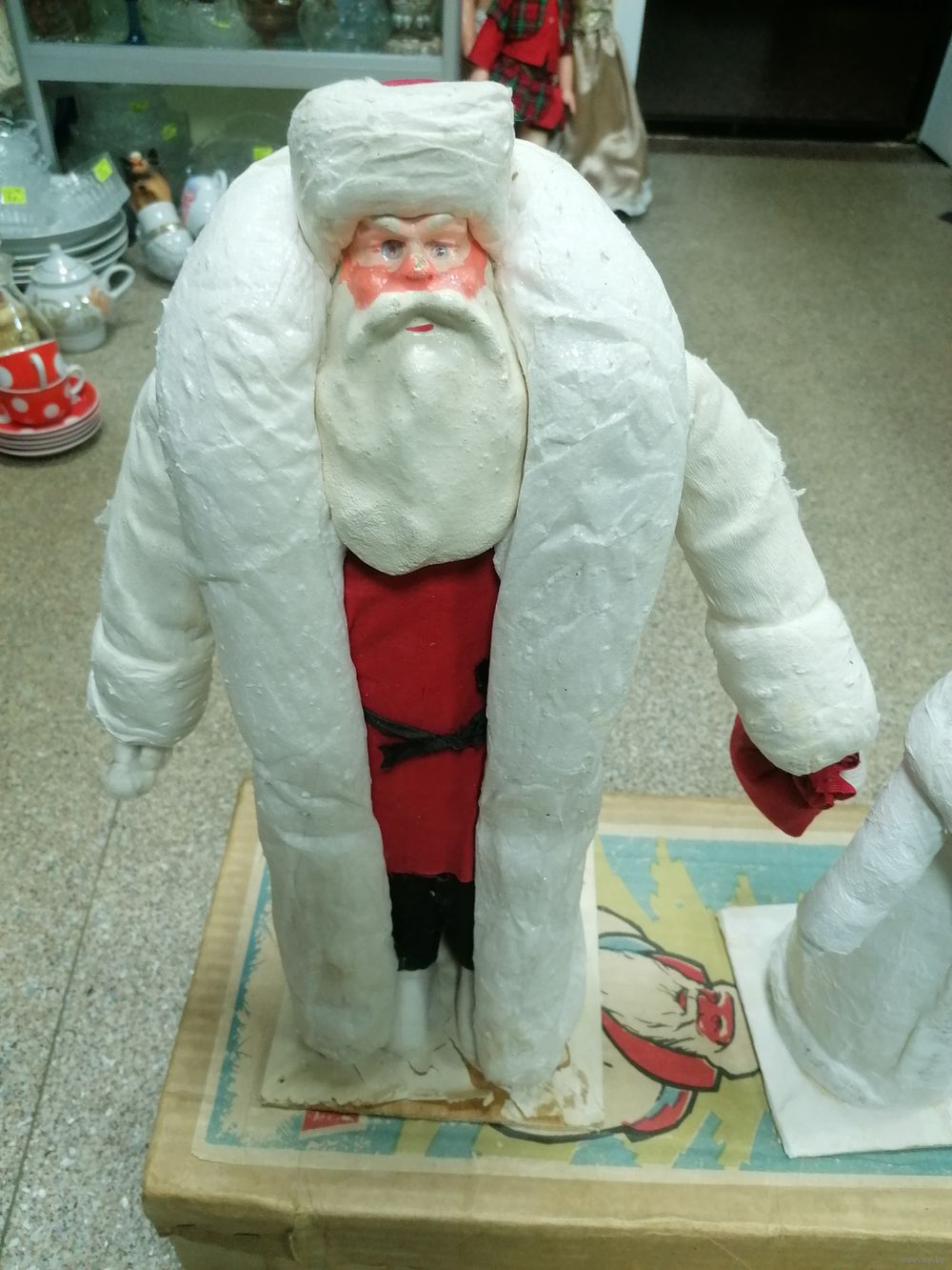 Состояние на фото. Туловище снегурочки подлеивали бумагой. Деда сзади подлеивали спину. В остальном хорошо