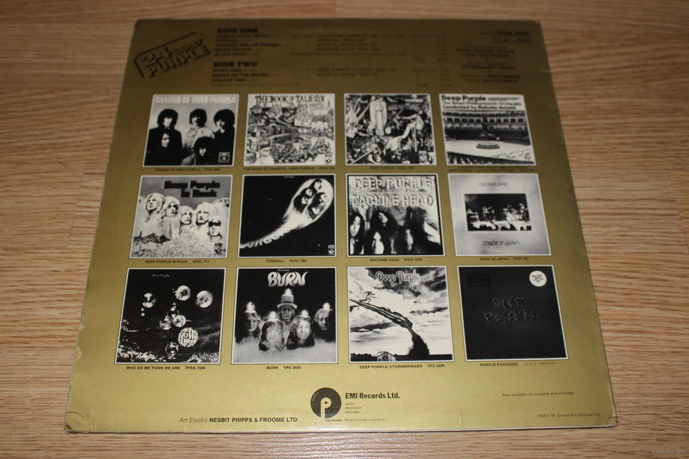 Very early first pressings included a small foldout booklet (210mm x 455mm) with Deep Purple discography, printed in black on gold. See pictures.