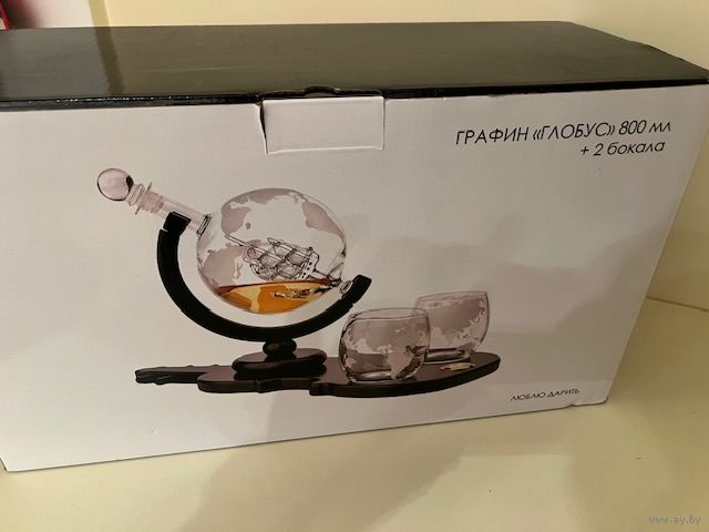Декантер, подставка с часами, два бокала. Всё новое и непользованное.