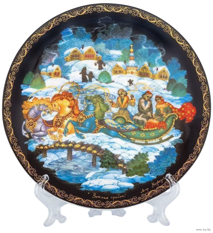 Декоративная Коллекционная тарелка Палех Зимняя тройка
