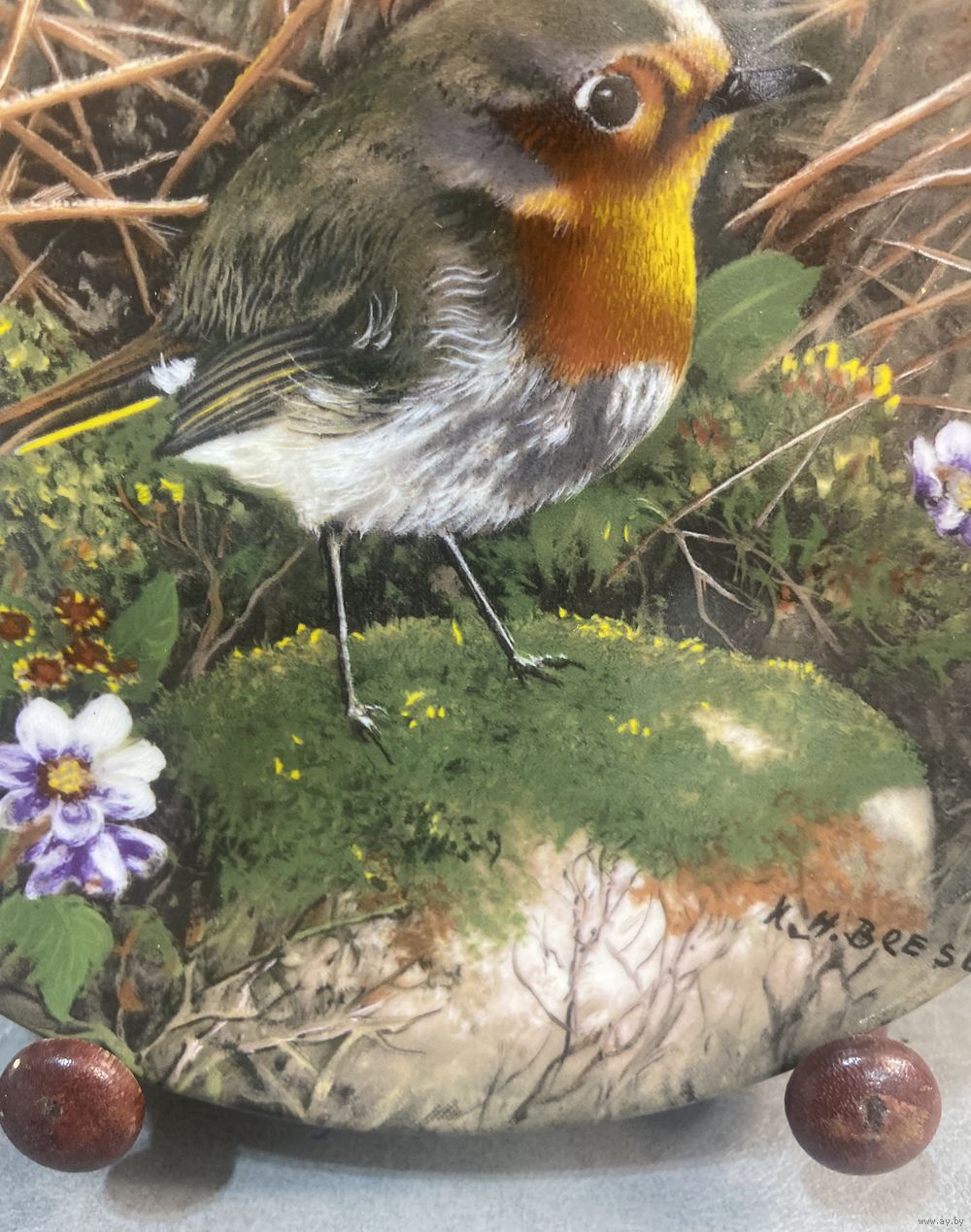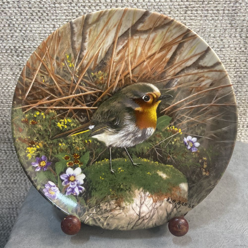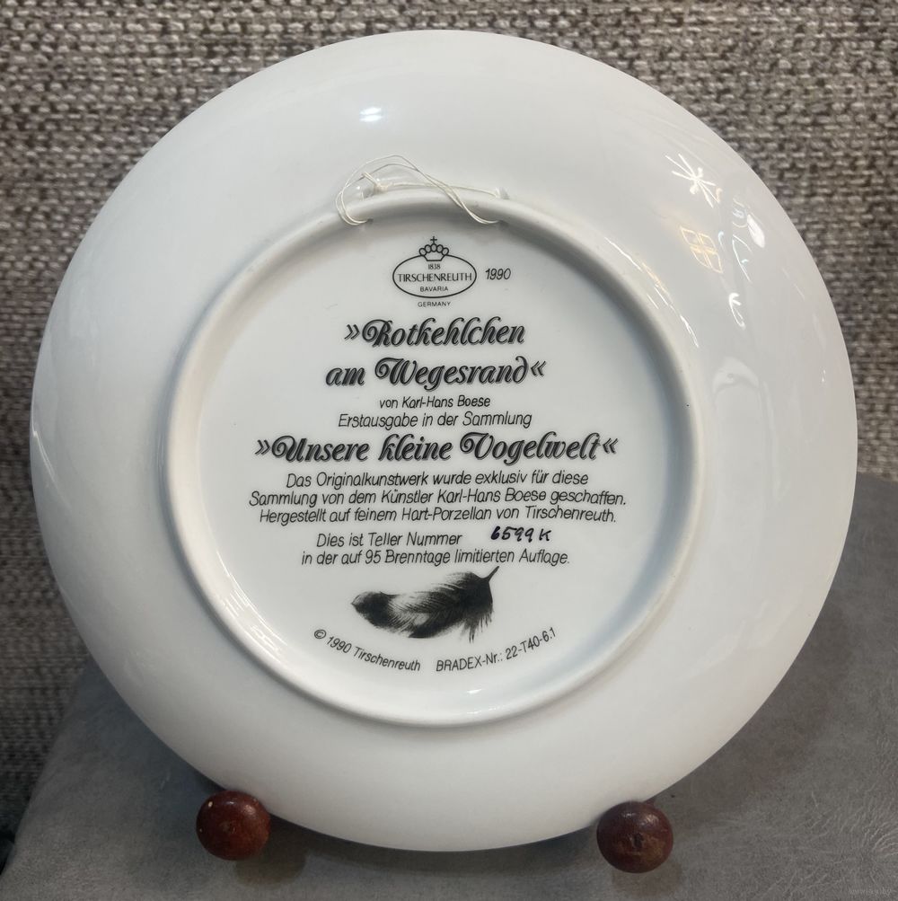 Декоративная настенная тарелка Tirschenreuth Малиновка на обочине дороги. Германия 1990 год. 19.5 см