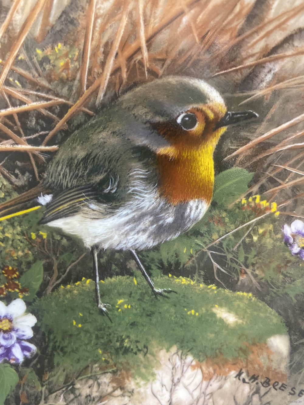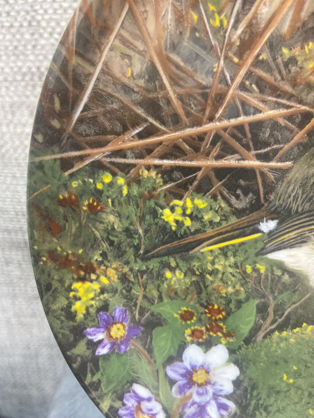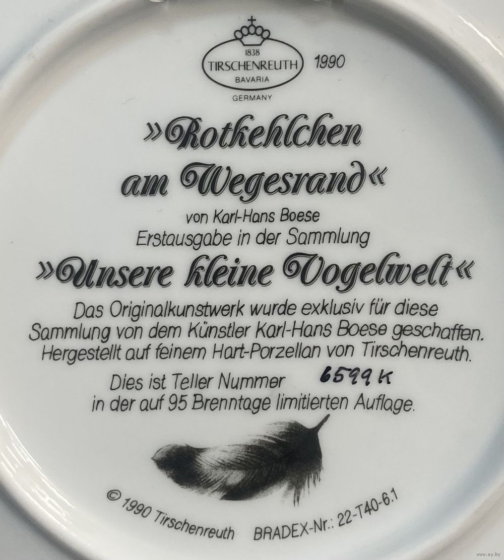 Декоративная настенная тарелка Tirschenreuth Малиновка на обочине дороги. Германия 1990 год. 19.5 см