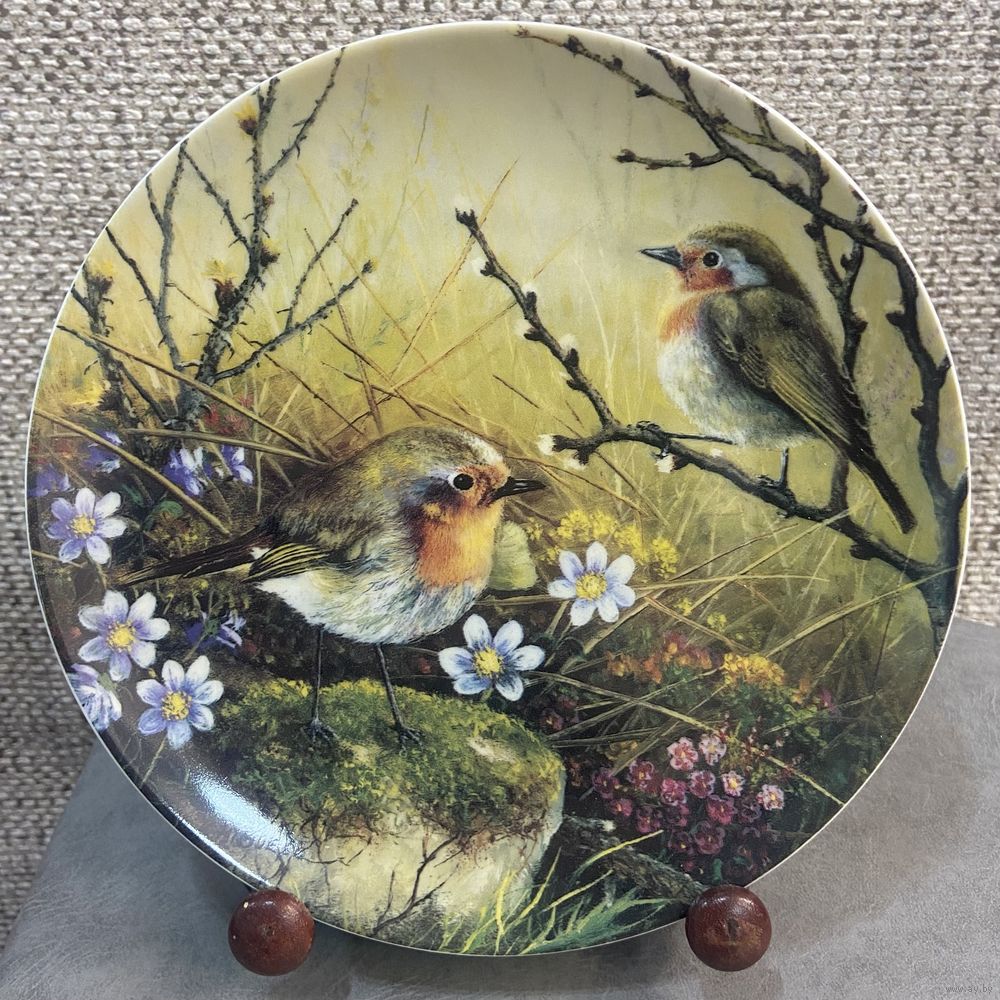 Декоративная настенная тарелка Tirschenreuth Свидание среди весенних цветов. Из серии Самые красивые портреты птиц Карла-Ганса Бёзе. Германия 1995 год. 19.5 см