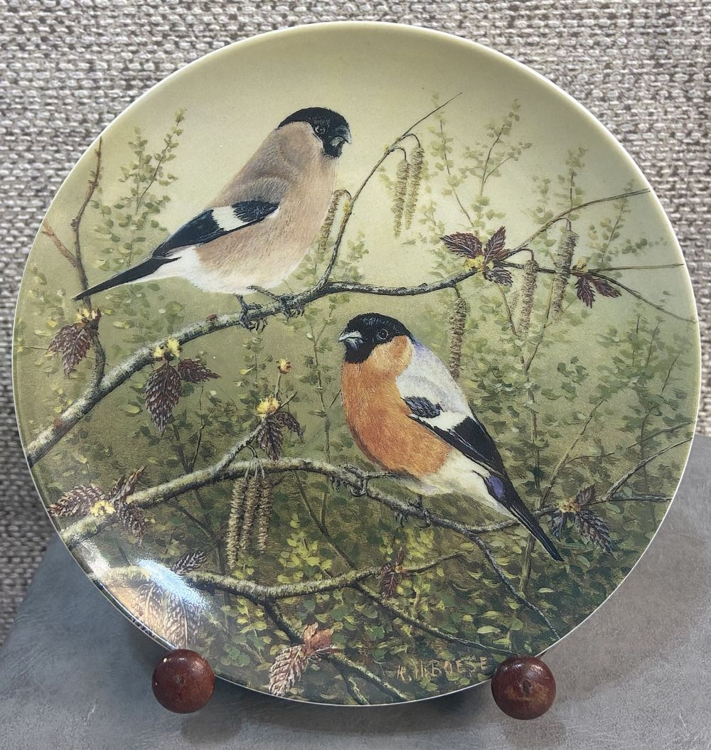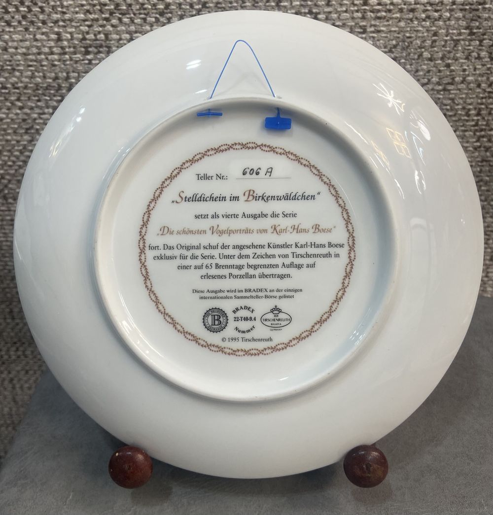 Декоративная настенная тарелка Tirschenreuth Свидание в березовой роще. Из серии Самые красивые портреты птиц Карла-Ганса Бёзе. Германия 1995 год. 19.5 см