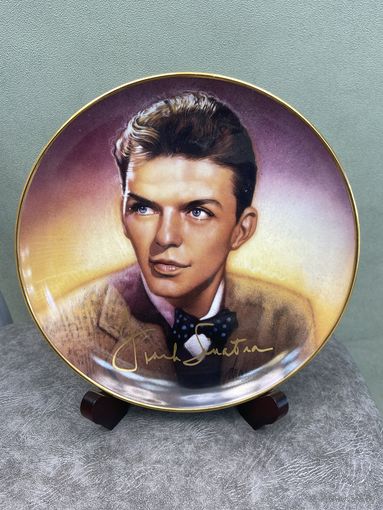 Франк Синатра Frankie. Дрю Струзан. Franklin Mint подтверждает, что Фрэнк Синатра. Официально разрешено семьей несет оригинальное произведение искусства Дрю Струзана. Имеет подпись Синатры и подпись художника. Также подтверждено, что это семейная реликвия. Коллекционная тарелка изготовлена из тонкого фарфора. Обрамлена и пронумерована вручную 22- каратным золотом.