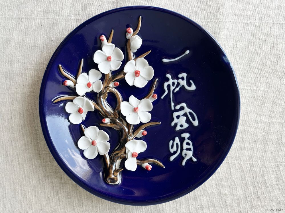 Декоративная Тарелка Китай клеймо фарфор лепка кобальт 15см