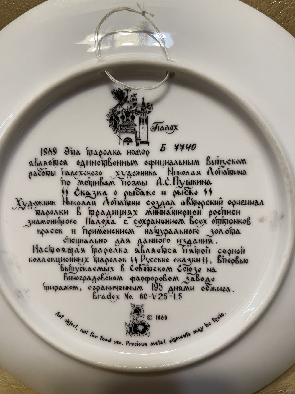 Коллекционная тарелка.Безупречное состояние.СССР.Виноградовский фарфоровый завод.1989 год.Полная информация на обратной стороне тарелки.