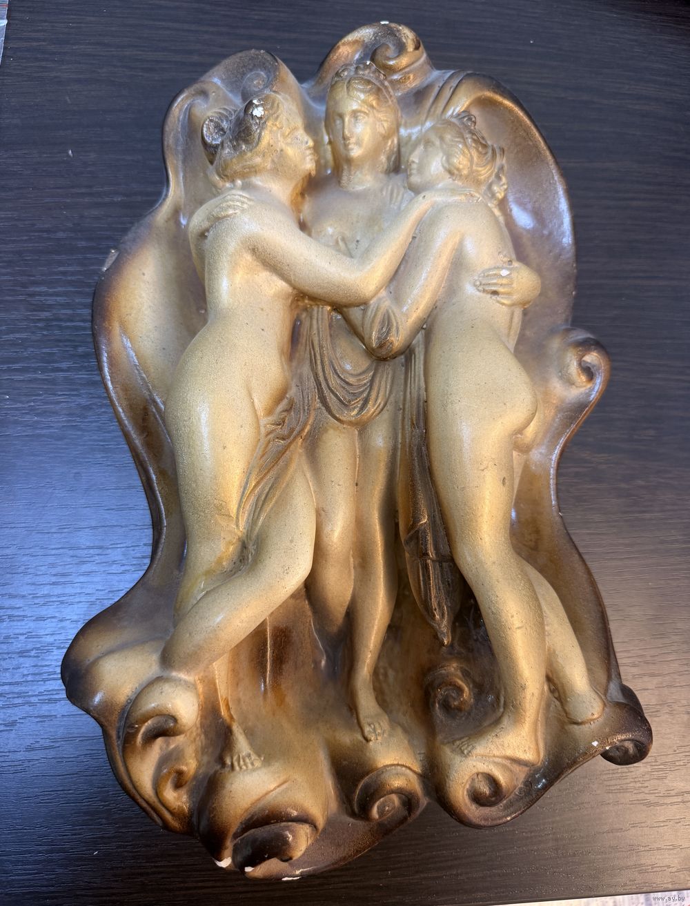 Декоративное панно «Три грации», изображающее мифологических богинь красоты, очарования и радости из гипса.