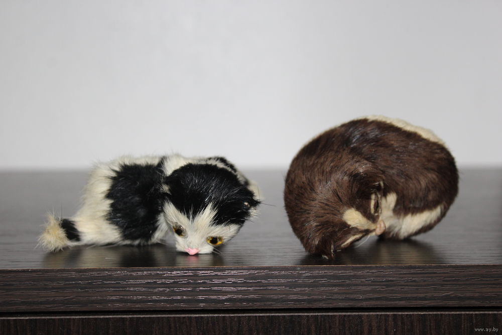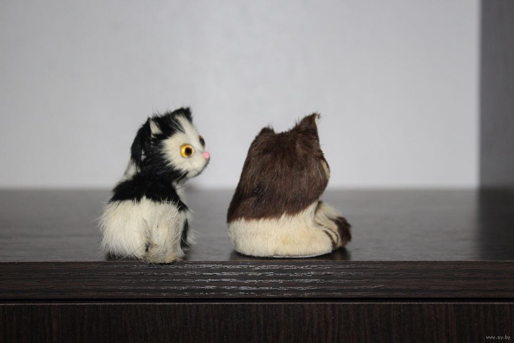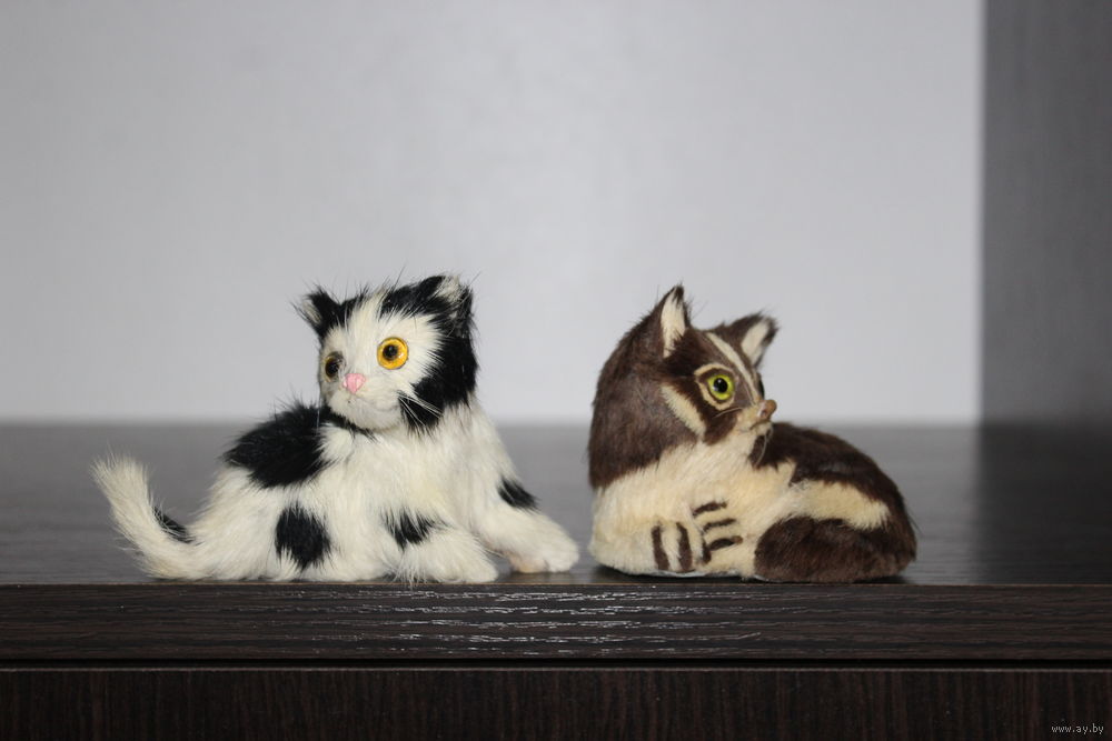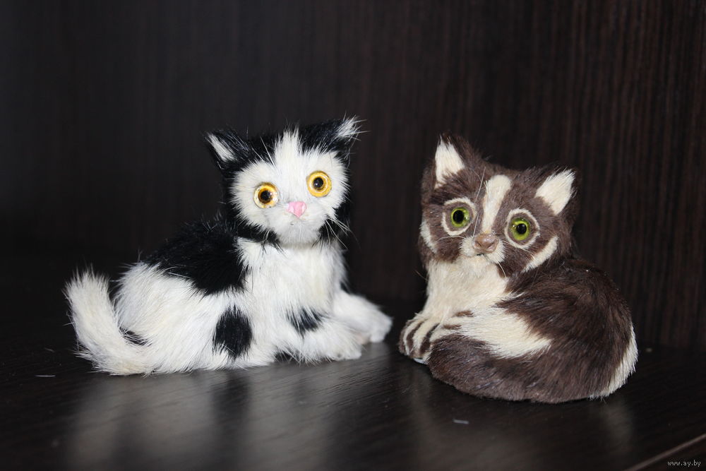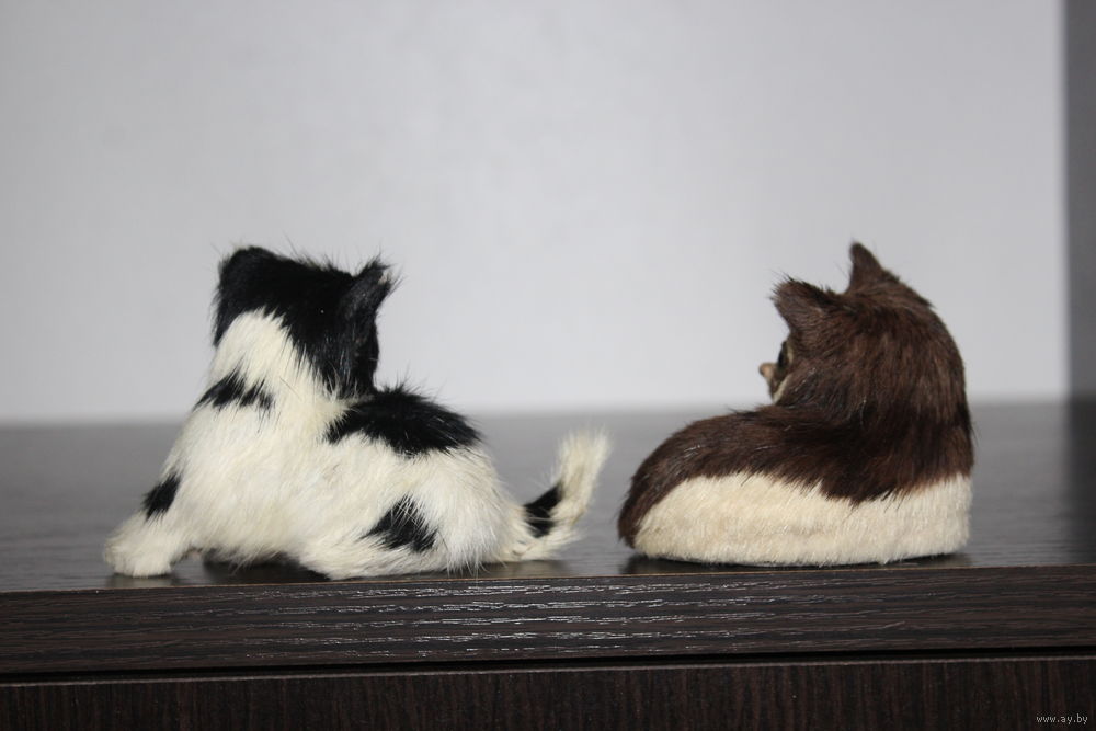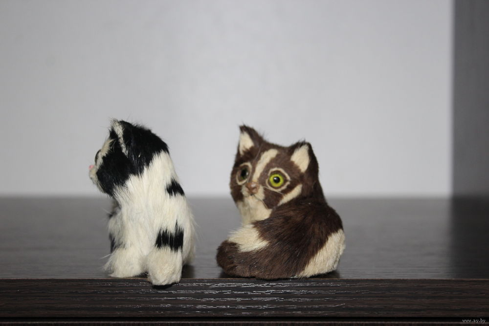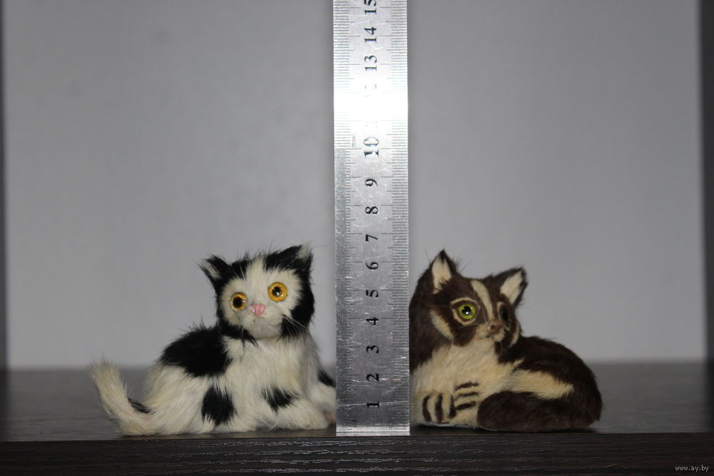 Высота черно-белого котика 6,5 см., ширина 10 см., высота коричневого котика 5,8 см., ширина 7 см.