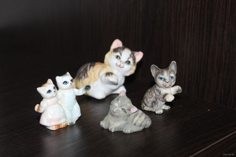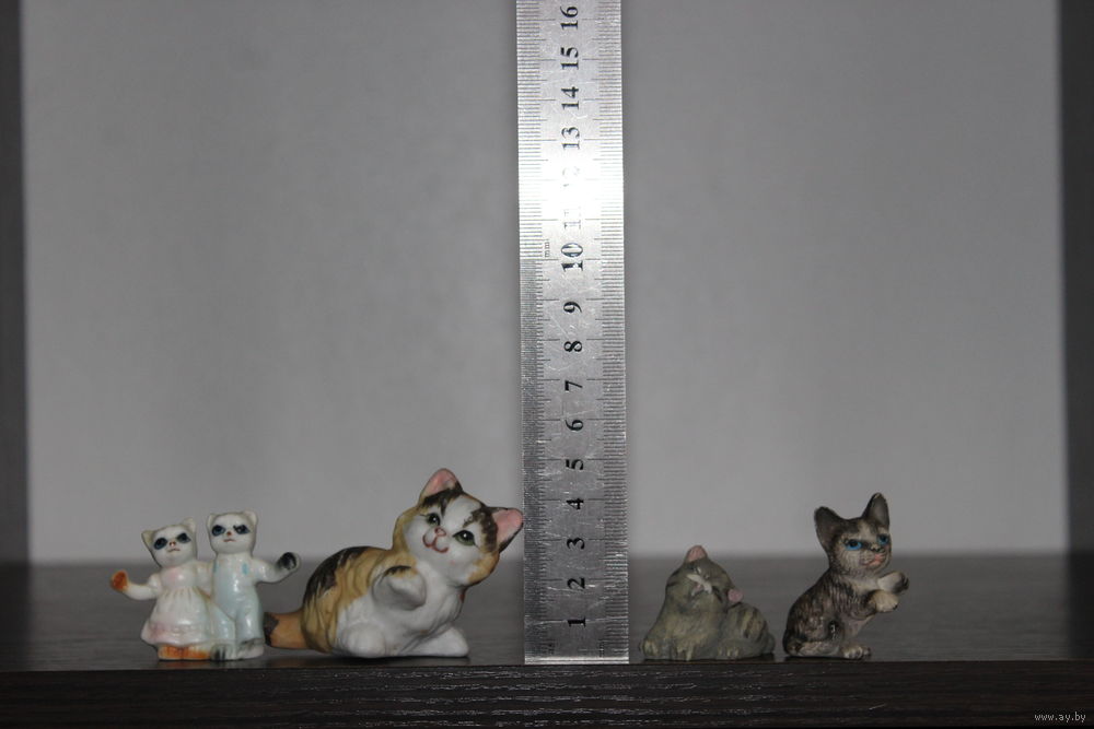 Высота большого котика 4,8 см., ширина 7 см., высота парных котиков 3,8 см., ширина 4,9 см., лежащего котика 2,8 см., ширина 3,7 см., котика сидящего 4,1 см., ширина 3 см.