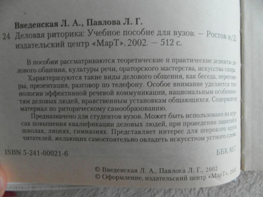 Рассматриваются аспекты делового общения, культуры речи, ораторского мастерства, искусства спора. Характеризуются виды делового общения. Важное значение придается технологиям эффективной речевой коммуникации, национальным особенностям деловых людей, нравственным установкам общающихся. Подготовлено с учетом требований федерального государственного образовательного стандарта высшего профессионального образования.
