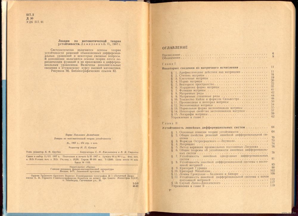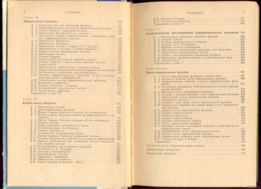Систематически излагаются основы теории устойчивости решений обыкновенных дифференциальных уравнений и некоторые смежные вопросы. В дополнении излагаются основы теории почти периодических функций и их приложения к дифференциальным уравнениям. Включены дополнительные сведения к втузовскому курсу высшей математики.