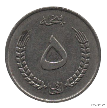 ДЕМОКРАТИЧЕСКАЯ РЕСПУБЛИКА АФГАНИСТАН. 5 АФГАНИ 1973