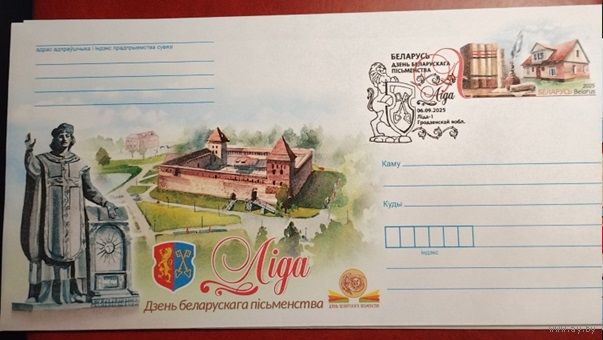 Лида. День белорусской письменности – на бел. языке, памятник Франциску Скорине, Лидский замок, эмблема Дня белорусской письменности, герб города