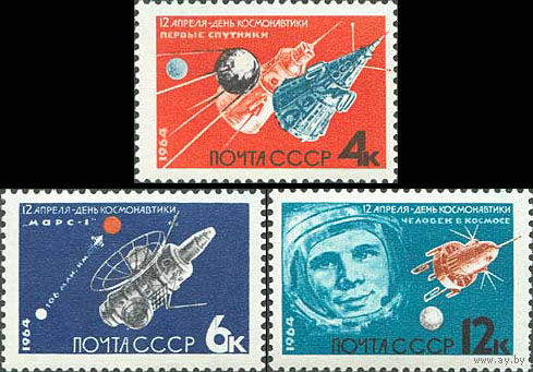 День космонавтики СССР 1964 год (3012-3014) серия из 3-х марок