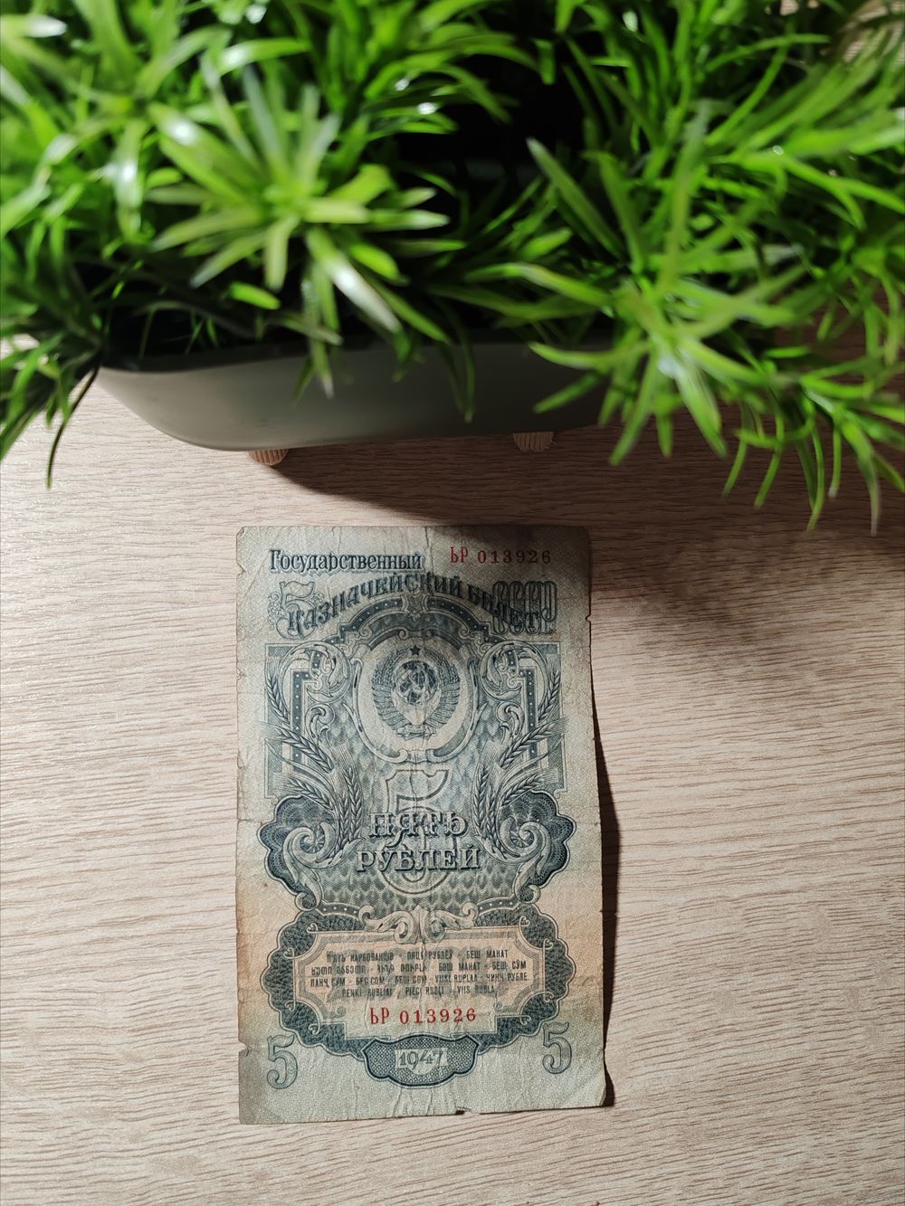Денежная купюра СССР 1947 года, номиналом 5 руб, в хорошем состоянии.