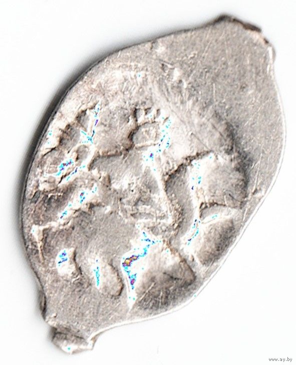 | Л.ст.: Штемпель монеты Ивана III. Бюст вправо. Круговая легенда. Об.ст.: Всадник с занесённой саблей скачет вправо. Букв под конём нет. | |