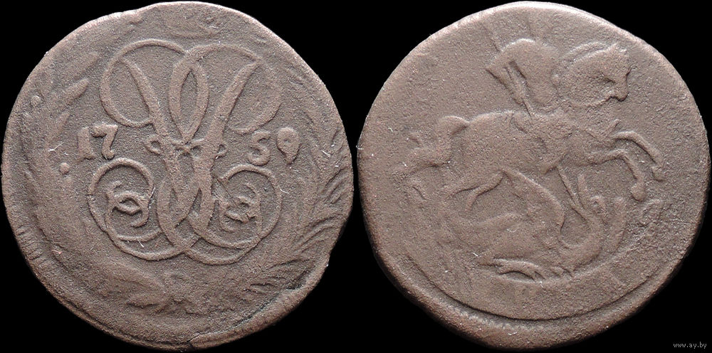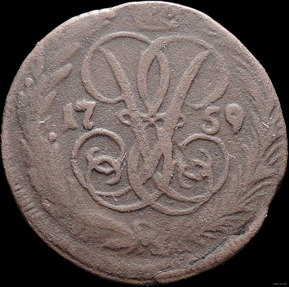 Денга 1759, Отличная! С 1 Рубля! Смотрите другие лоты!