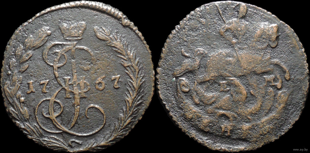 Денга 1767 ЕМ, Отличная! С 1 Рубля! Смотрите другие лоты!