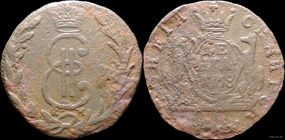 Денга 1768 КМ, Нечастая! С 1 Рубля! Смотрите другие лоты!