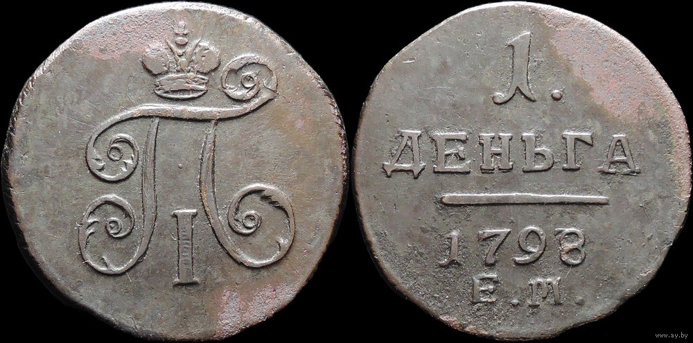 Деньга 1798 ЕМ, Отличная! Перегравировка из 1797! С 1 Рубля! Смотрите другие лоты!