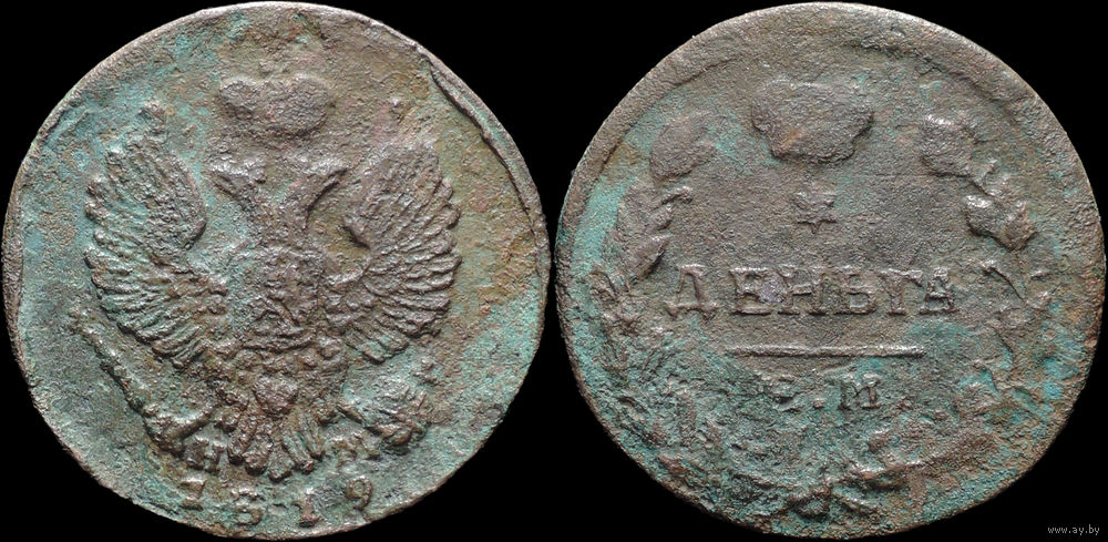 Деньга 1819 ЕМ НМ, Рельеф! С 1 Рубля! Смотрите другие лоты!