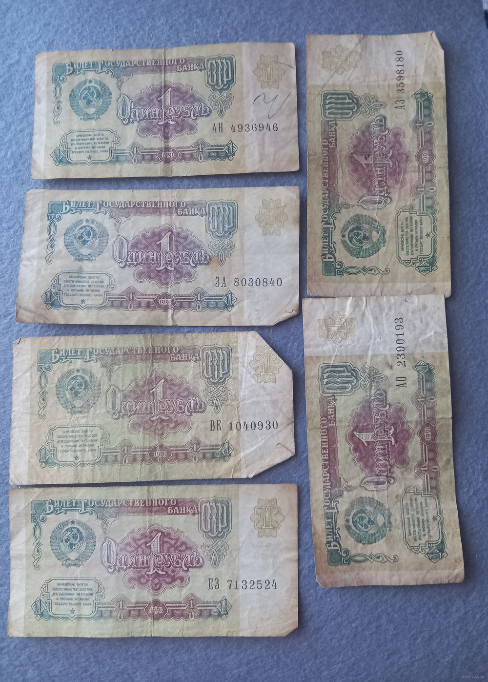 1 рубль 1991 года - 6 штук;