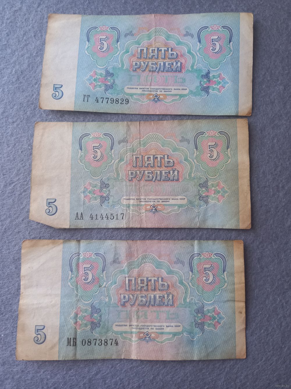 5 руб. 1991 года - 3 штуки;