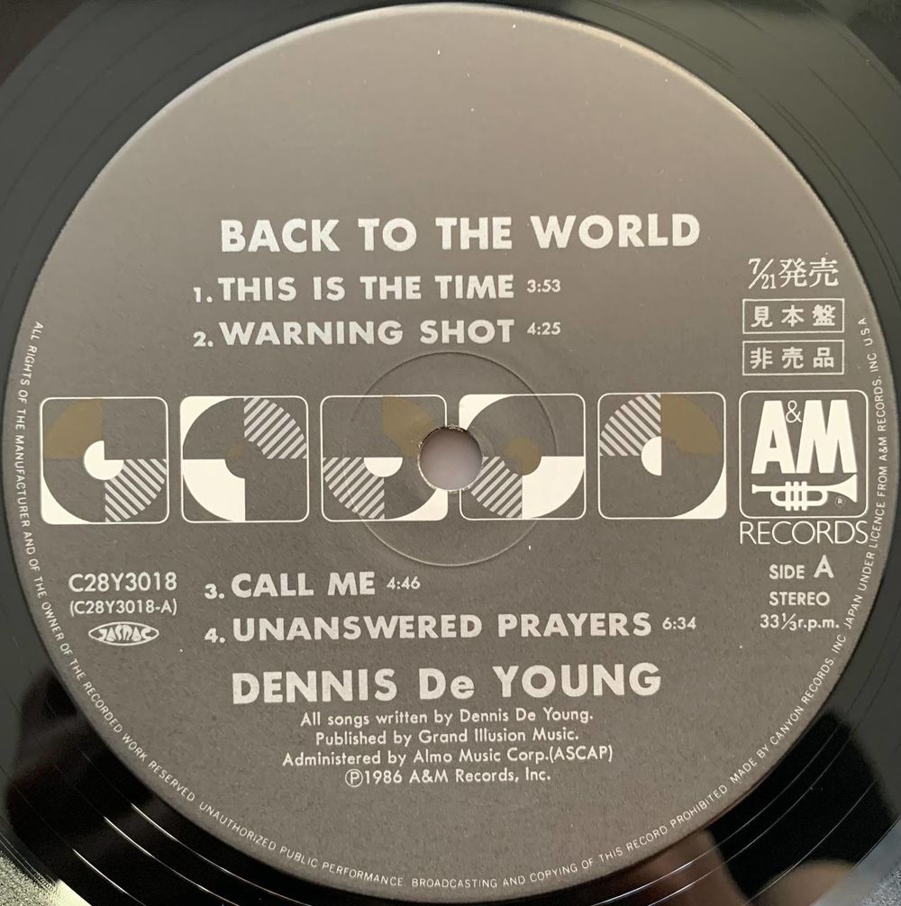 Dennis DeYoung – Back To The World (Promo) / JAPAN 1986