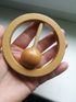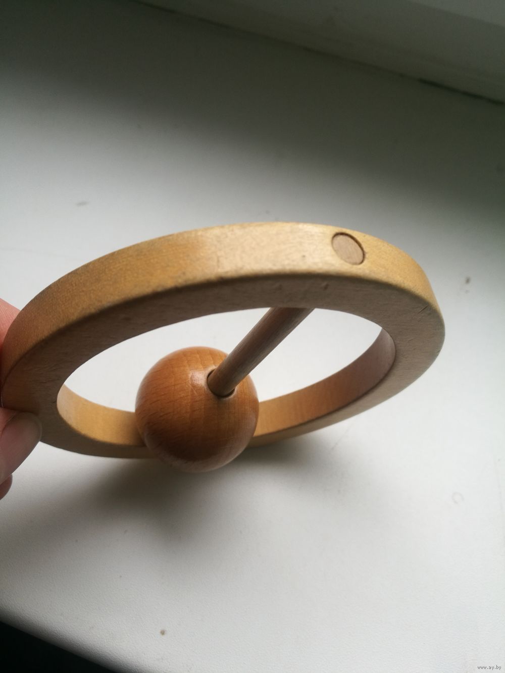 Игрушка из бука, форма и размеры специально разработаны, чтобы её было удобно держать маленькими ручками. Шарик в центре может свободно двигаться.