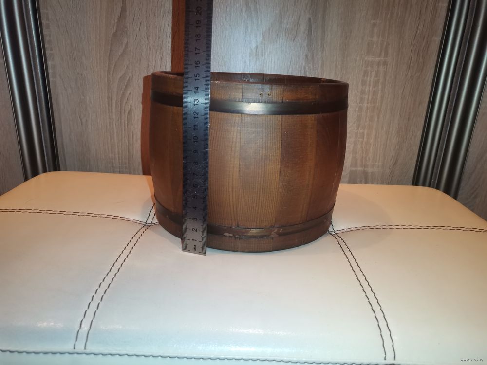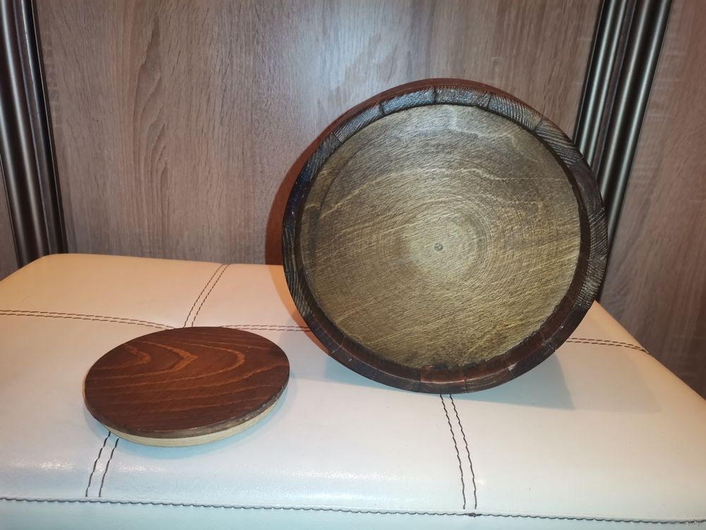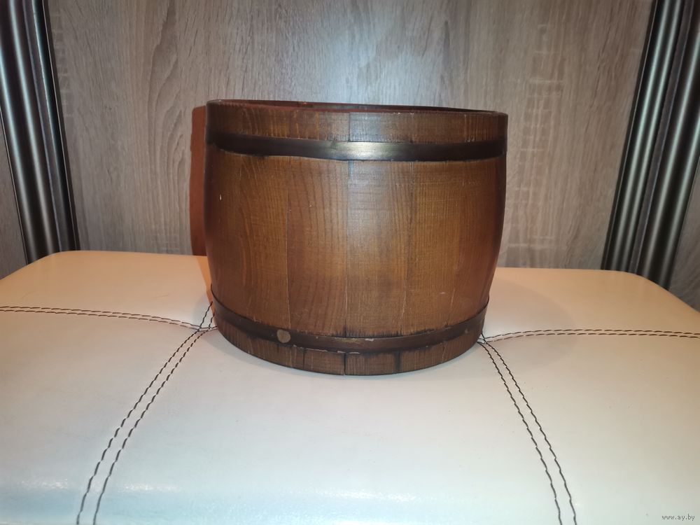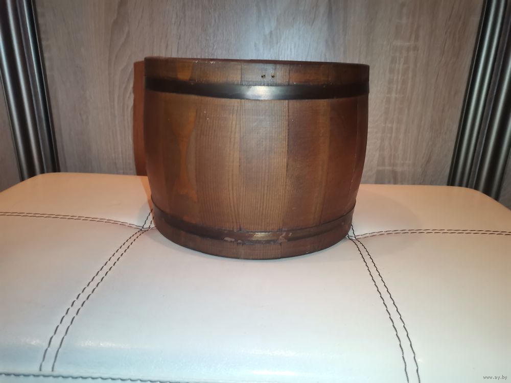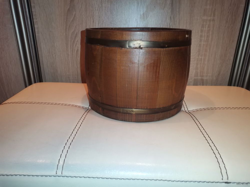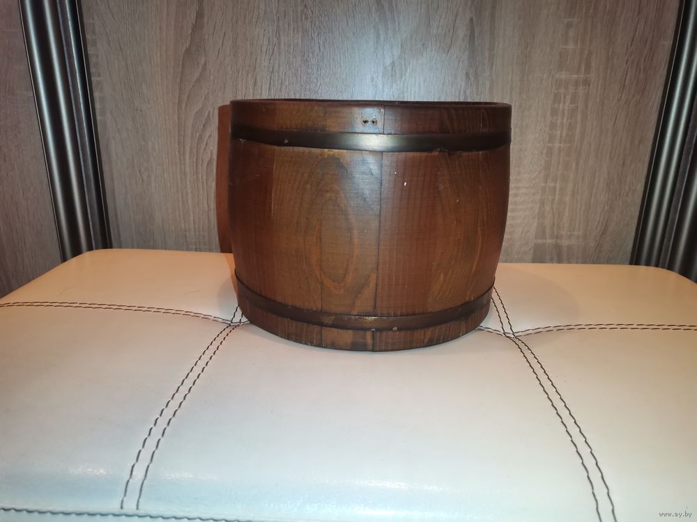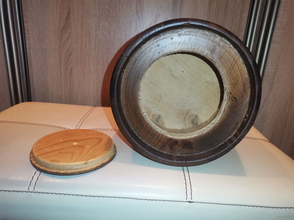 Деревянный бочёнок с крышкой, времён СССР, объём 2-3 литра, высота 15 см., диаметр 19 см.