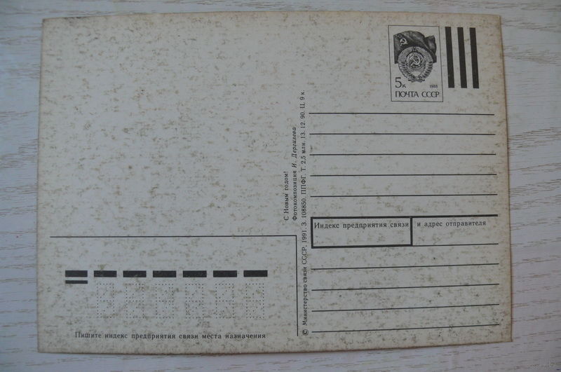 | См. на фото. На обороте не загрязнения! Это типографская краска от такой же открытки, лежащей сверху. | |