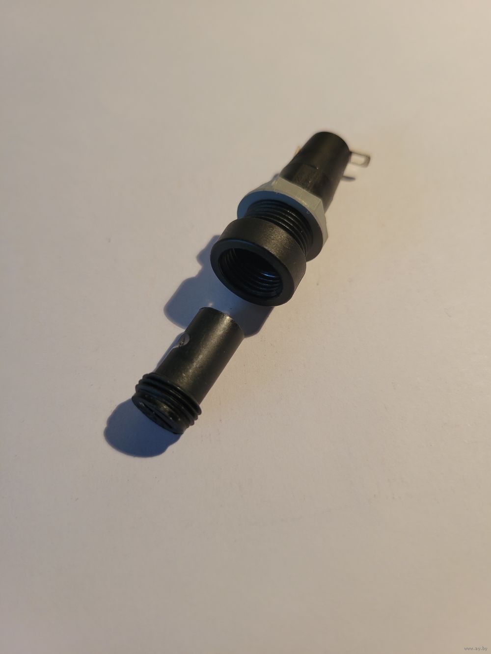 Держатель предохранителя 5х20mm, закрытого типа, монтаж на панель на резьбе, 250V, 10A, соединение крышки резьбовое.