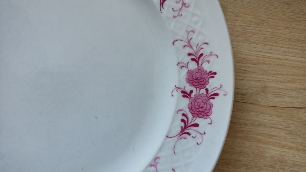 Характеристики: Фарфоровая посуда с характерным рельефным краем и цветочным декором.