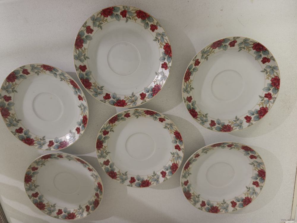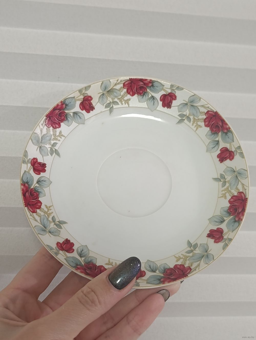 Очень красивые десертные тарелки с изображением красных роз с лепестками.