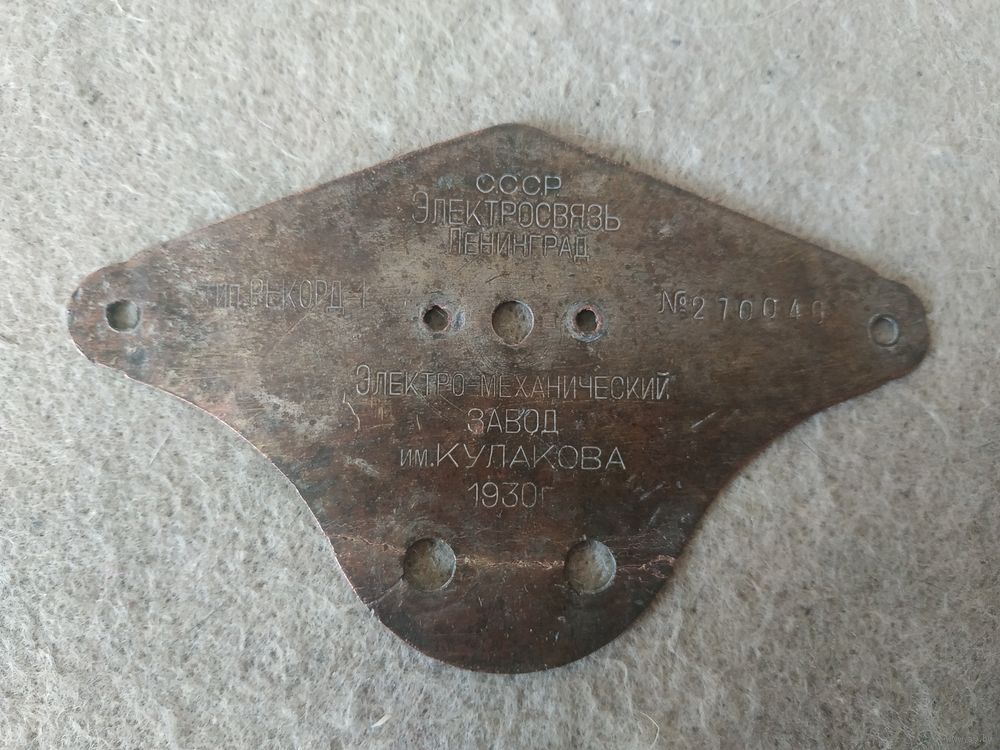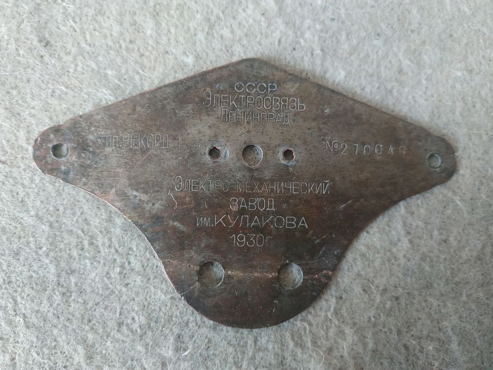 Деталь (шильдик) настольно-настенного репродуктора "Рекорд - 1". СССР, Ленинградский электро-механический завод имени Кулакова, 1930 год.