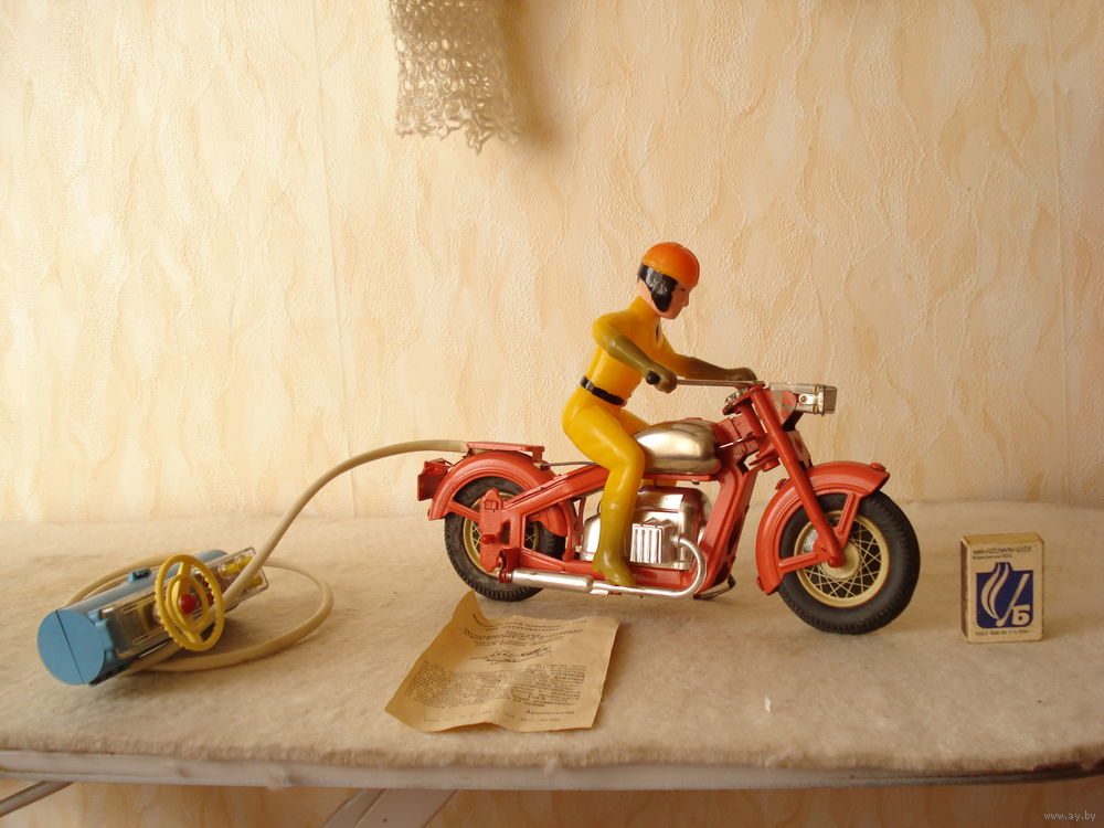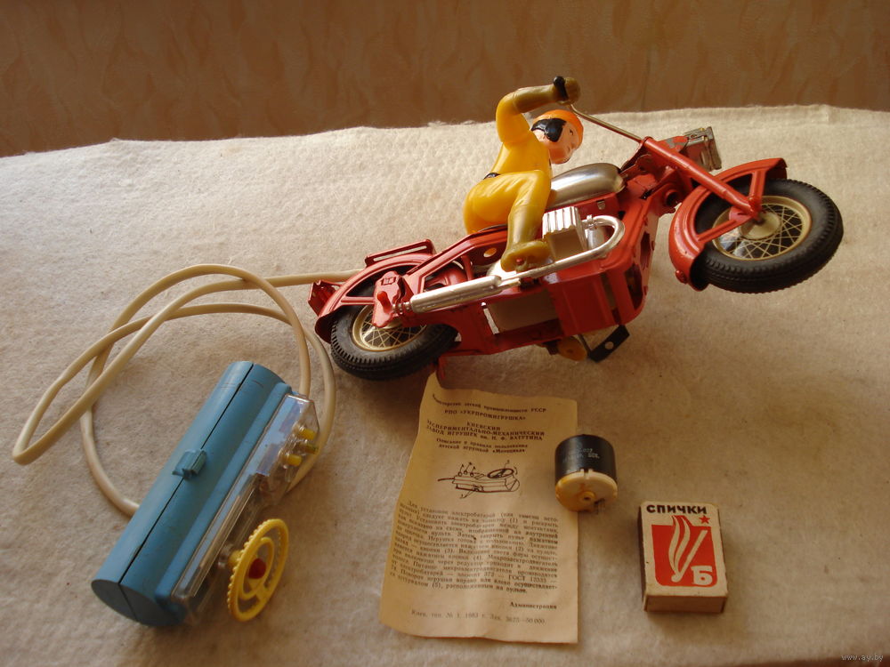 Редкая детская электромеханическая игрушка "Мотоцикл". СССР, 1983 год.