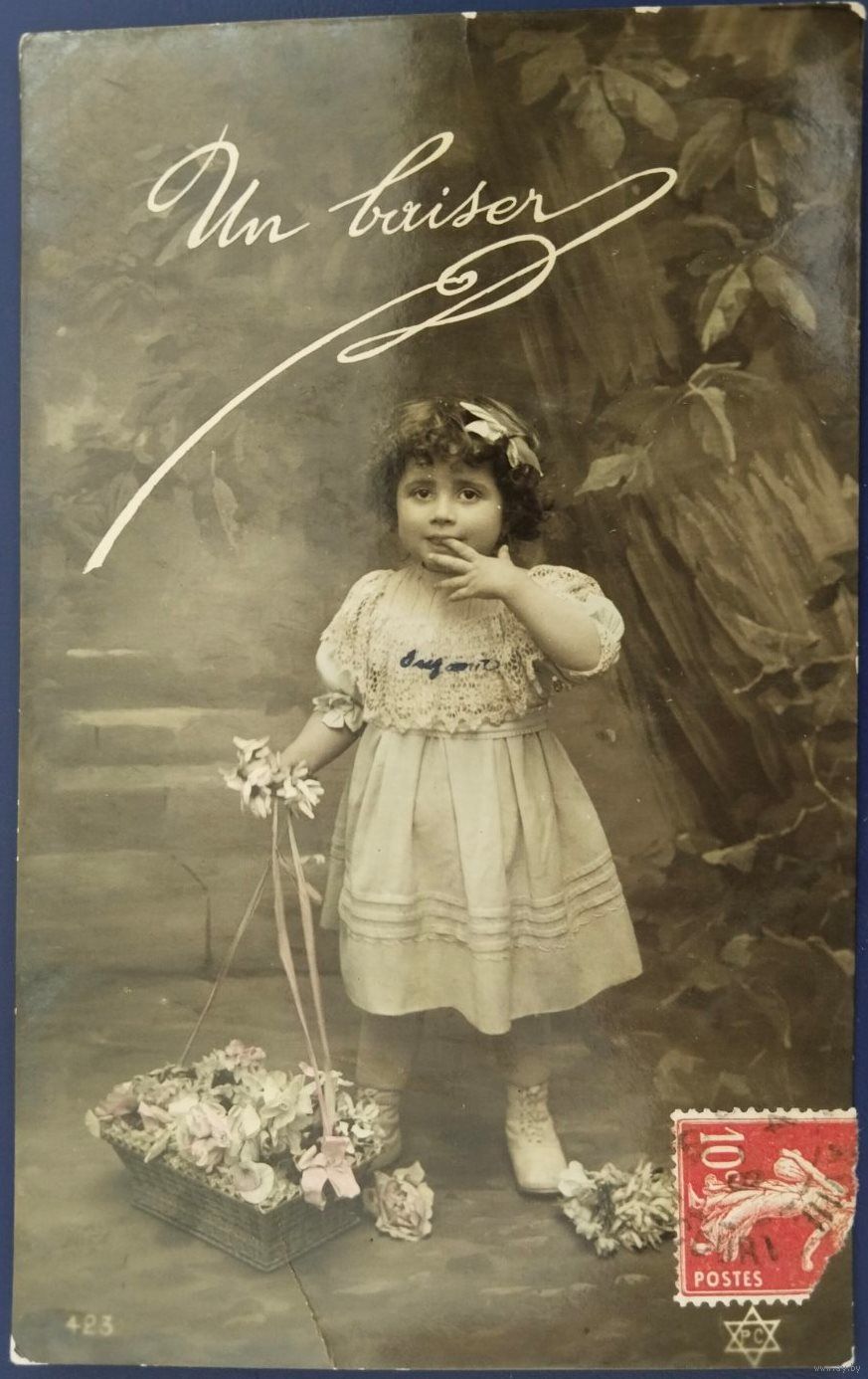 Детская фотооткрытка. Поцелуй. Франция. Начало 20-го века.